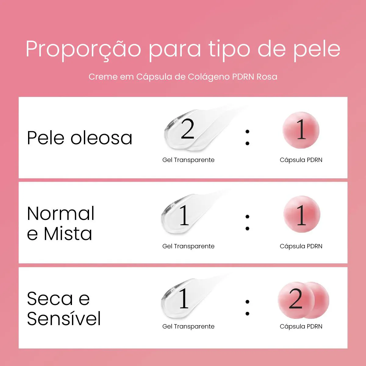 - Creme facial com textura dupla de cápsulas PDRN e gel.