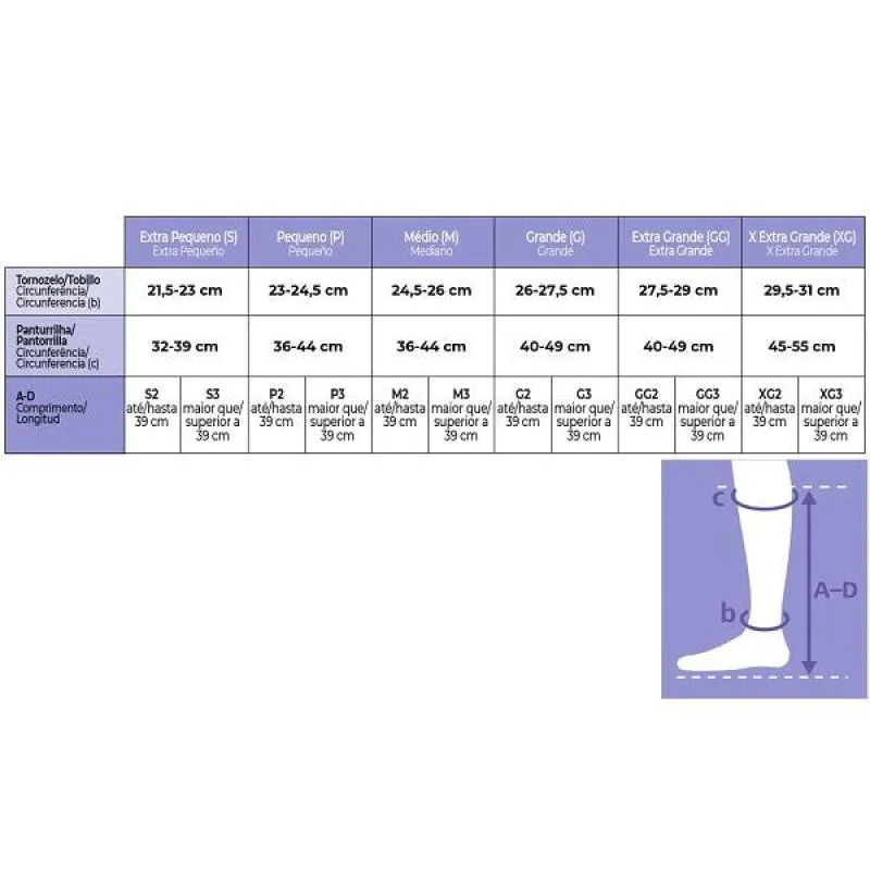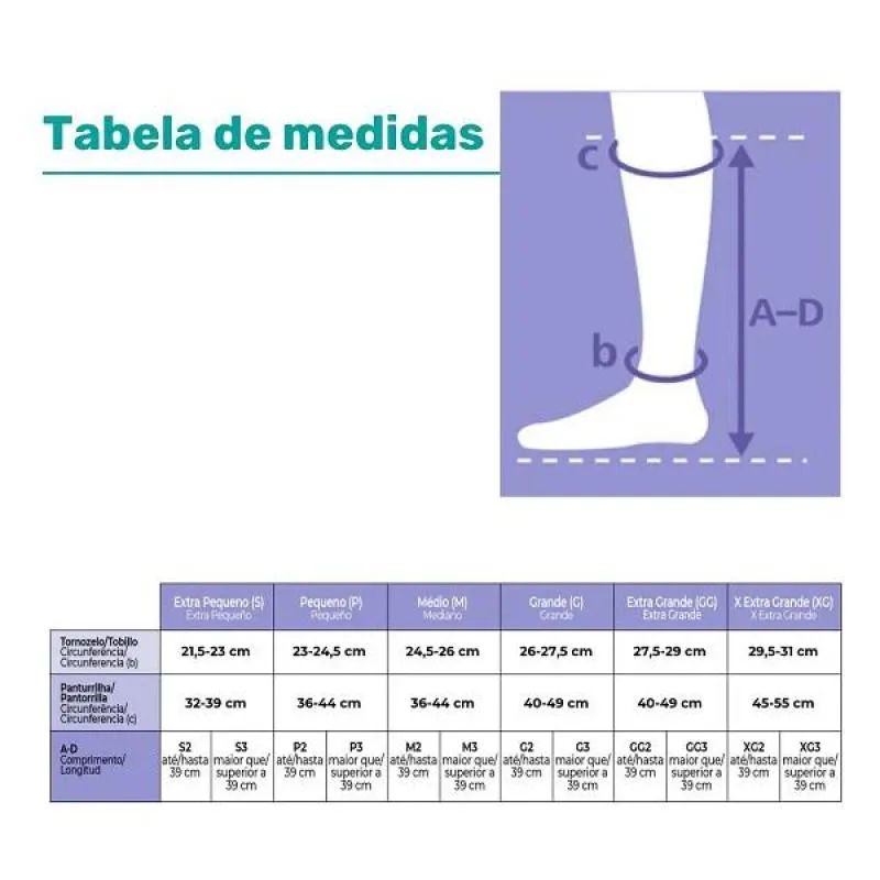 - Escolha o tamanho correto da meia conforme medidas do seu membro.