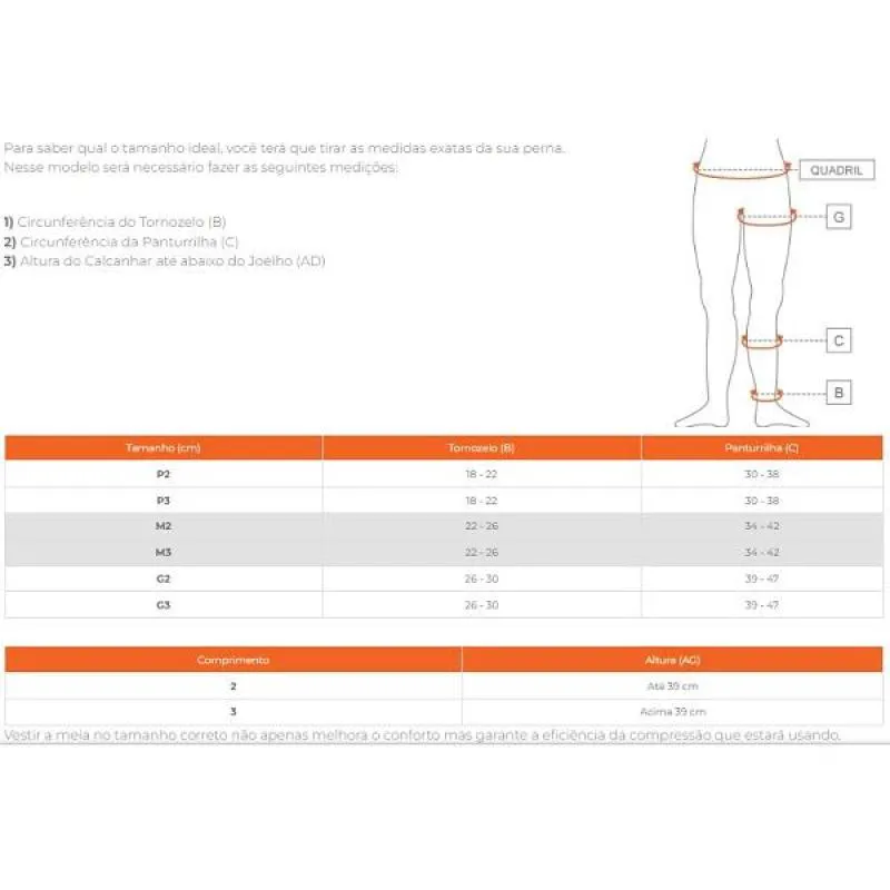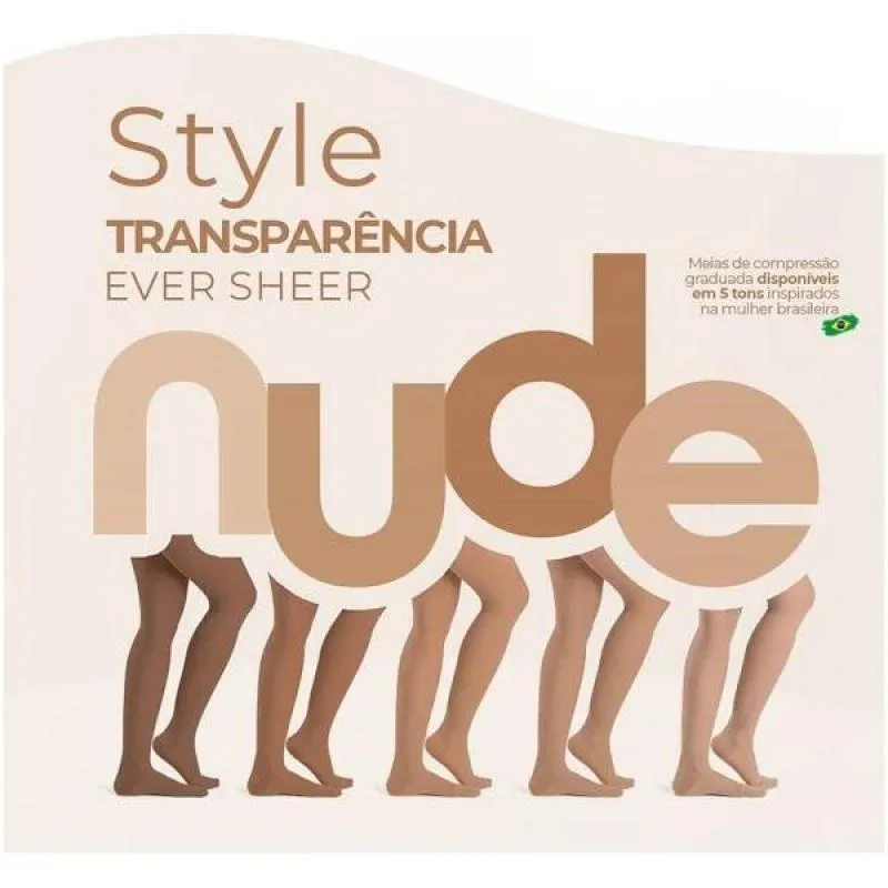 Meia 3/4 Alta Compressão 20-30mmHg Aberta Nude Vanila P2 Ever Sheer