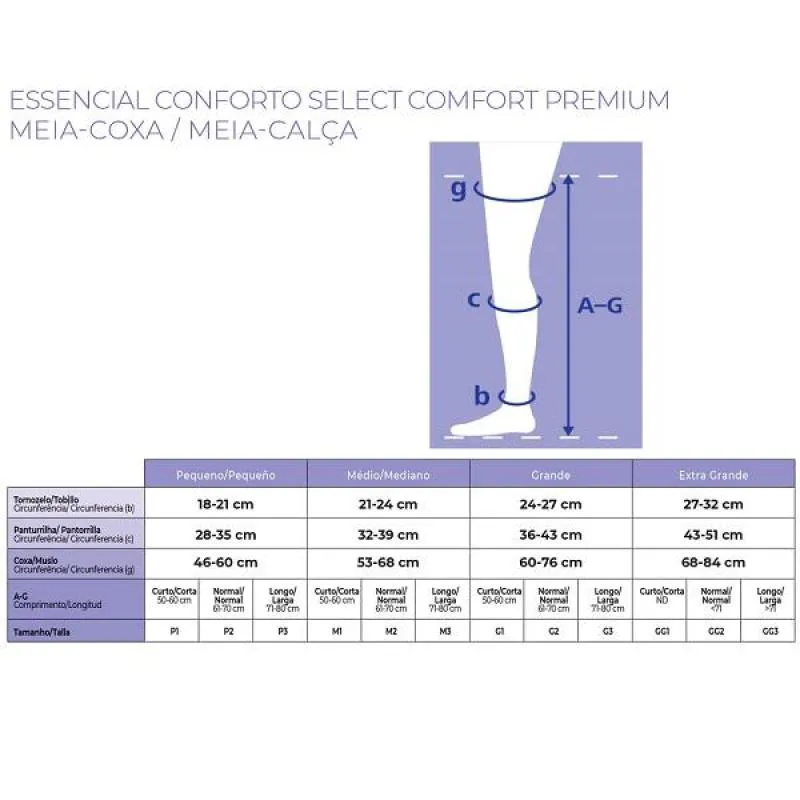Meia 7/8 Select Comfort Premium 861 Compressao 15-20Mmhg Fechada