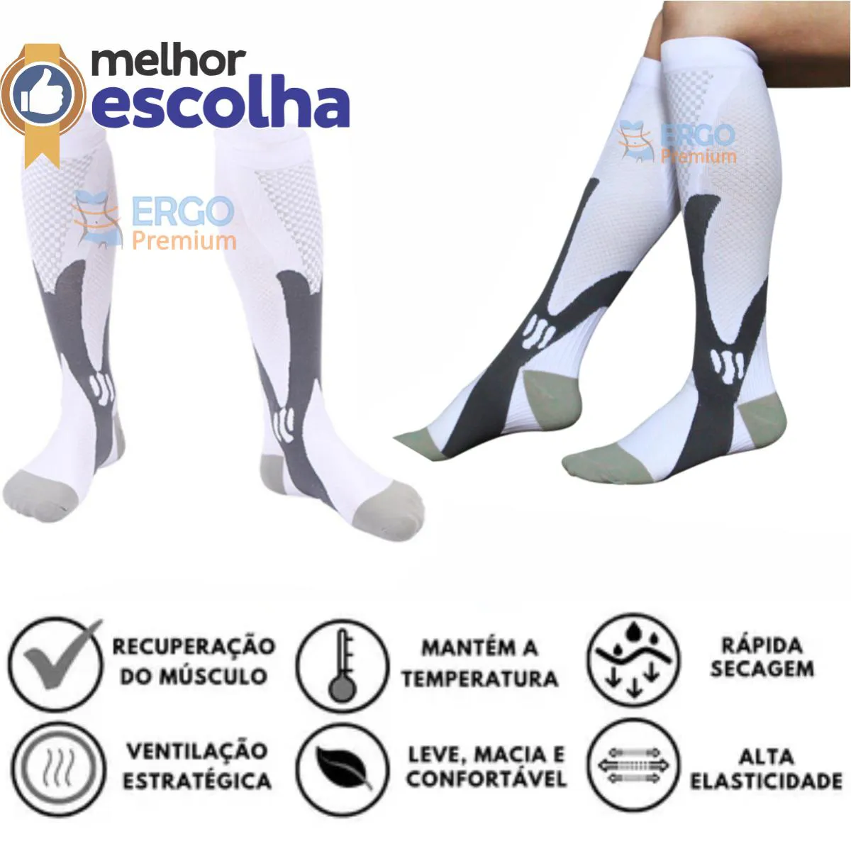 Meia de Alta Compressão Para Descanso Das Pernas e Fadiga Muscular Original 1par 35a40 Branco.