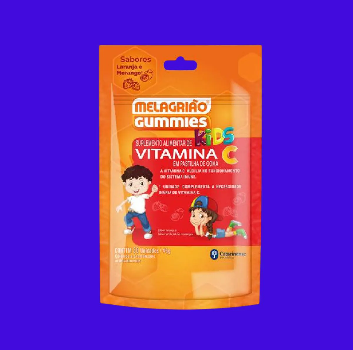 Melagrião® Gummies Kids tem duplo sabor, laranja e morango, sendo que tais sabores agradam muito as crianças. O Catarinense Pharma quer ser seu aliado na manutenção da saúde, assim recomenda que o consumo dos seus produtos deve estar associado a uma alimentação equilibrada e hábitos de vida saudáveis.