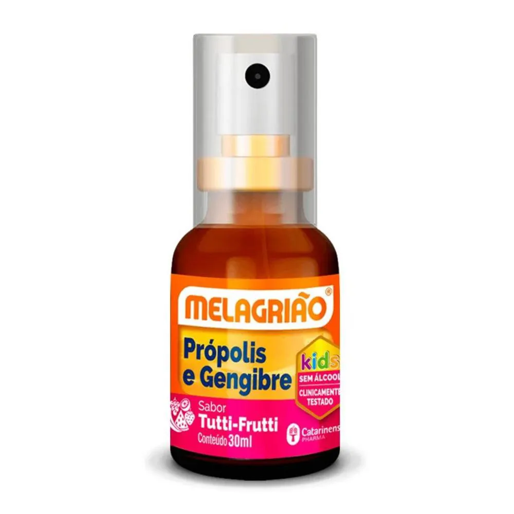 Melagrião Spray Própolis Spray 30ml Catarinense Tutti Frutti O Melagrião Spray é um aromatizante bucal com extrato de própolis e gengibre que, além de proporcionar um hálito refrescante e agradável, auxilia na manutenção da higiene bucal, contribuindo também para uma sensação boa de bem-estar. Finalidade do Uso