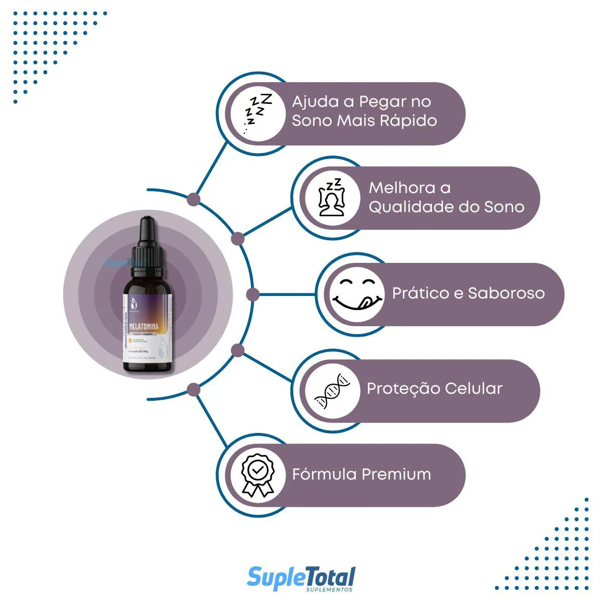Desenvolvida para quem busca noites mais tranquilas e uma rotina de descanso equilibrada, a Melatonina em Gotas 30 ml oferece praticidade, precisão na dosagem e um delicioso sabor de maracujá, tornando o uso mais agradável. Com fórmula líquida de rápida absorção, ela auxilia na regulação do ciclo do sono, favorecendo uma sensação de relaxamento e ajudando você a preparar o corpo para descansar melhor.Destaques do produto: