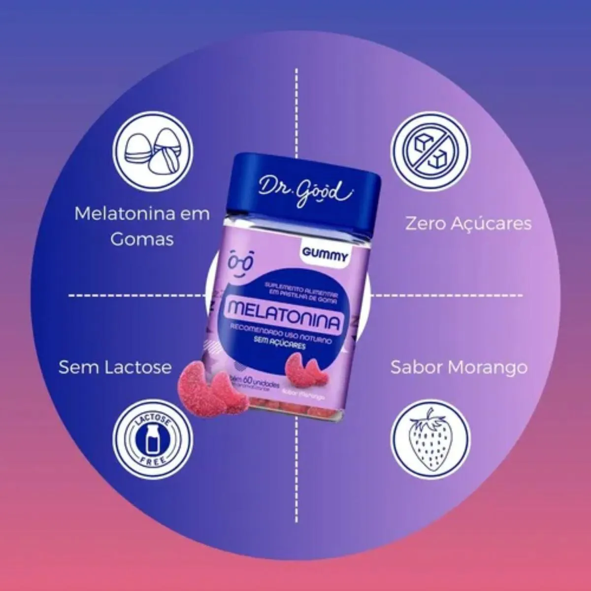 Melatonina Dr Good C60 Gomas Sabor Morango Fini