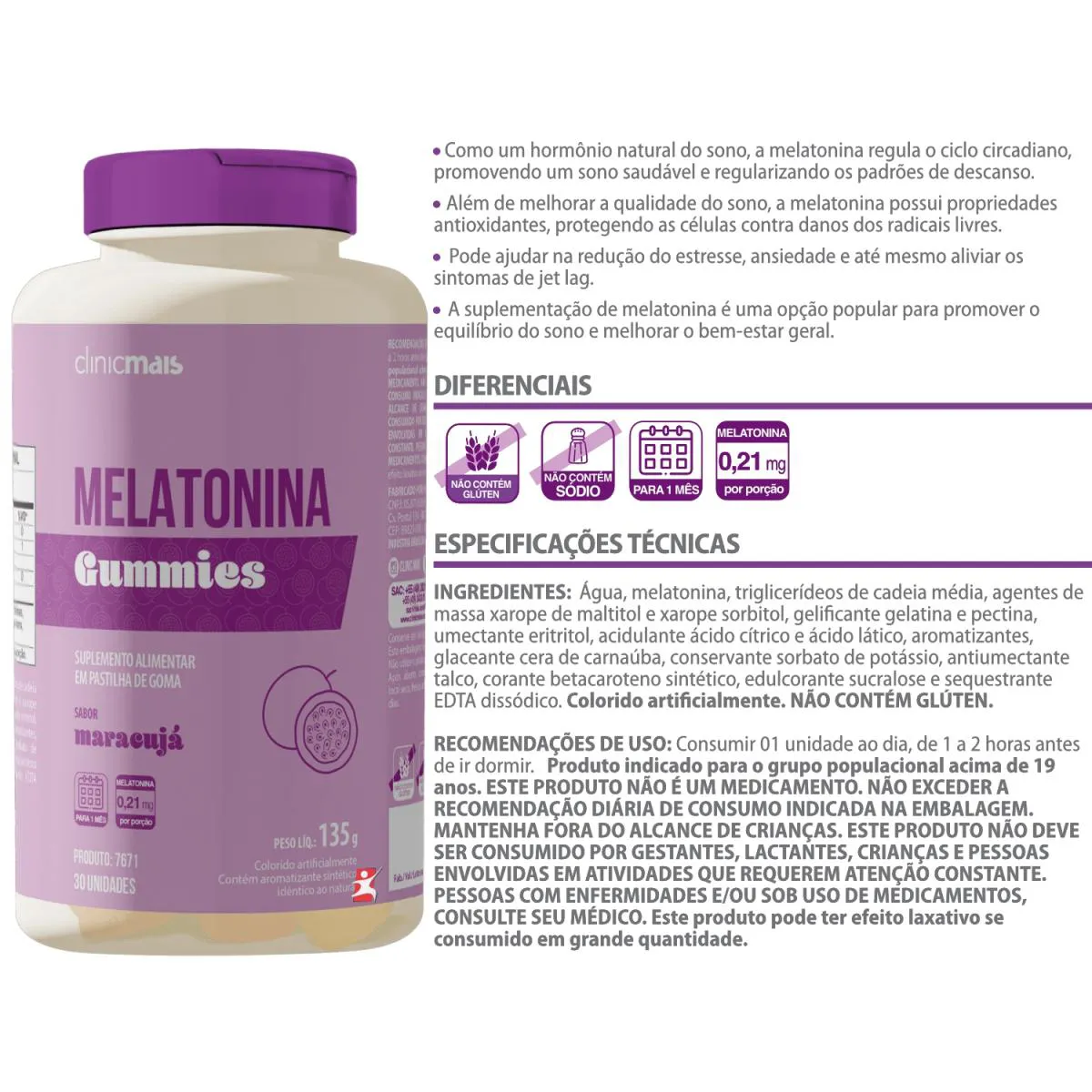 Melatonina em Gummies Sabor Maracuja 30 Gomas - Clinicmais