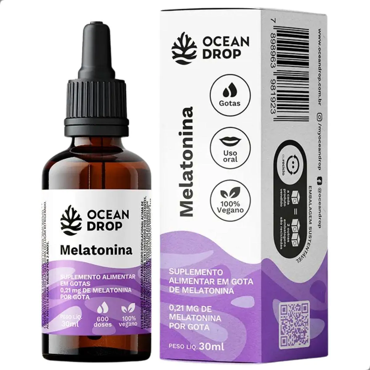 A composição é 100% vegana, livre de aditivos artificiais e alinhada a práticas de nutrição minimalista. O frasco compacto facilita o transporte e contribui para uma experiência de uso organizada, reforçando a abordagem da Ocean Drop de unir naturalidade e conveniência.
