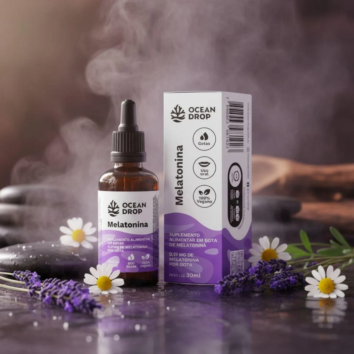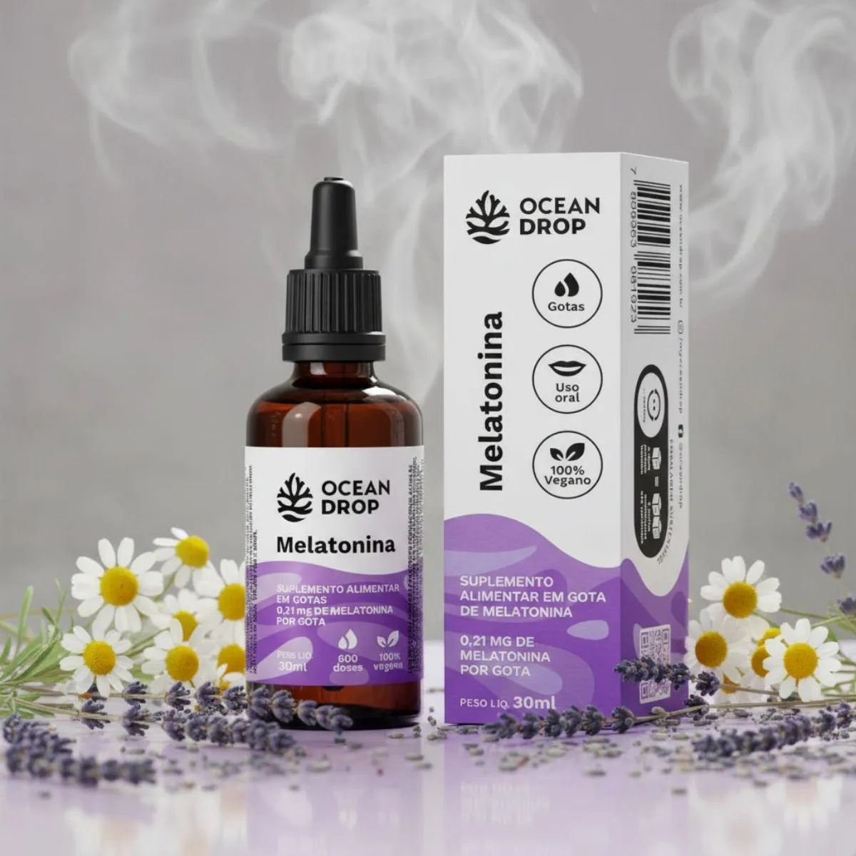 A Melatonina Líquida Vegana Ocean Drop 30 ml foi elaborada para oferecer praticidade e suavidade em uma rotina de bem-estar mais organizada. A textura fluida e o formato em gotas facilitam a utilização diária, mantendo o padrão clean label e a proposta natural que caracterizam a marca.