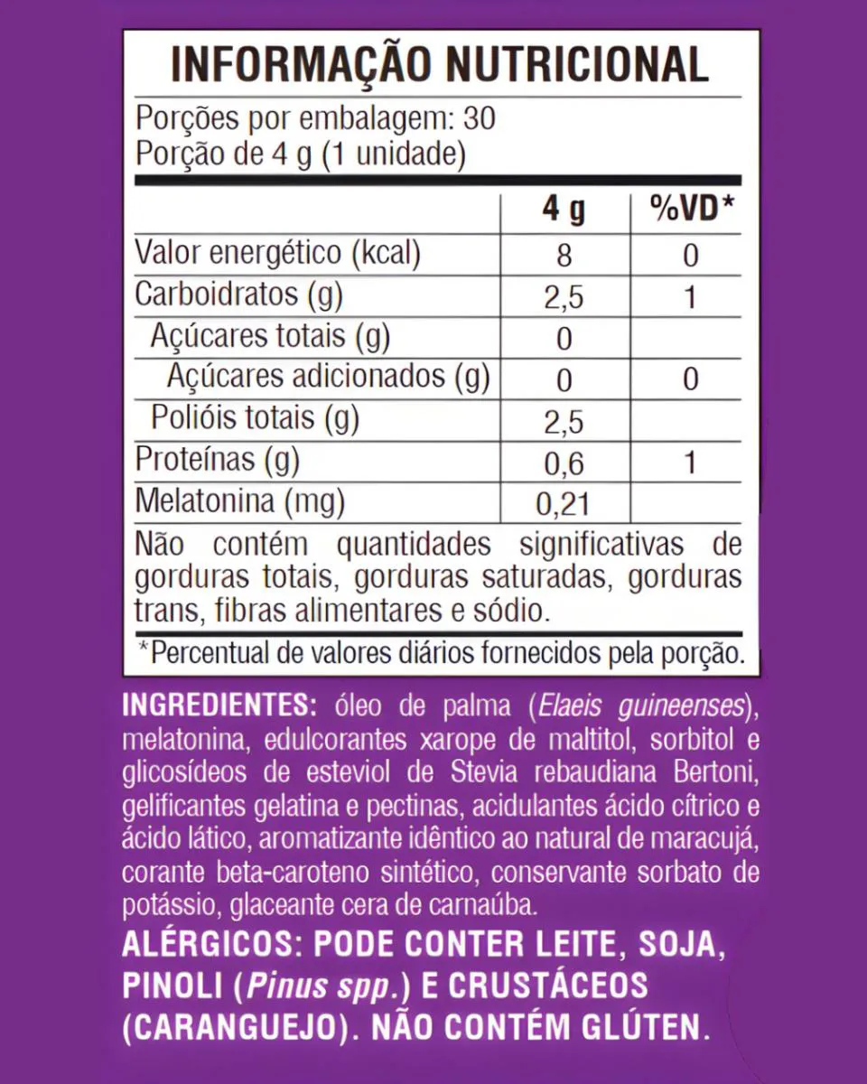 Melatonina Yummy - Gummys 30 Gomas Deliciosas Sabor Maracujá
