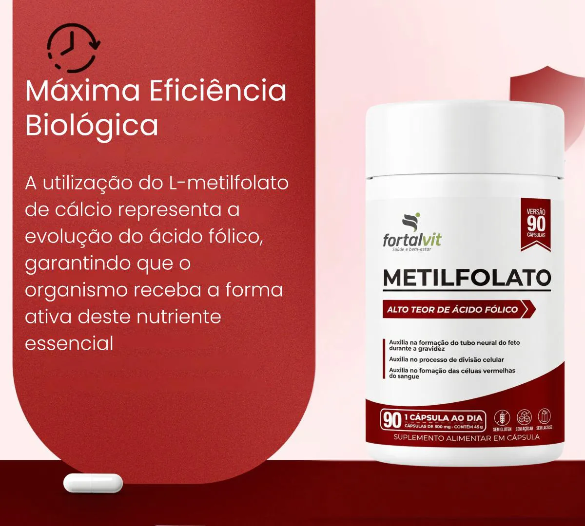 Metilfolato ácido fólico (B9), Alto Teor e Biodisponibilidade (284%VD), 90 Cápsulas, 3 Meses de Uso, Longa Duração, Fortalvit