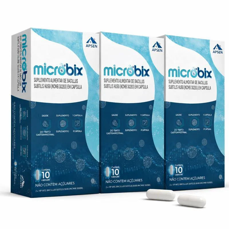 Microbix é um suplemento alimentar probiótico em cápsulas, indicado para auxiliar no equilíbrio da flora intestinal, especialmente em situações de diarreia, cólicas abdominais e alterações do intestino causadas por medicamentos ou infecções.