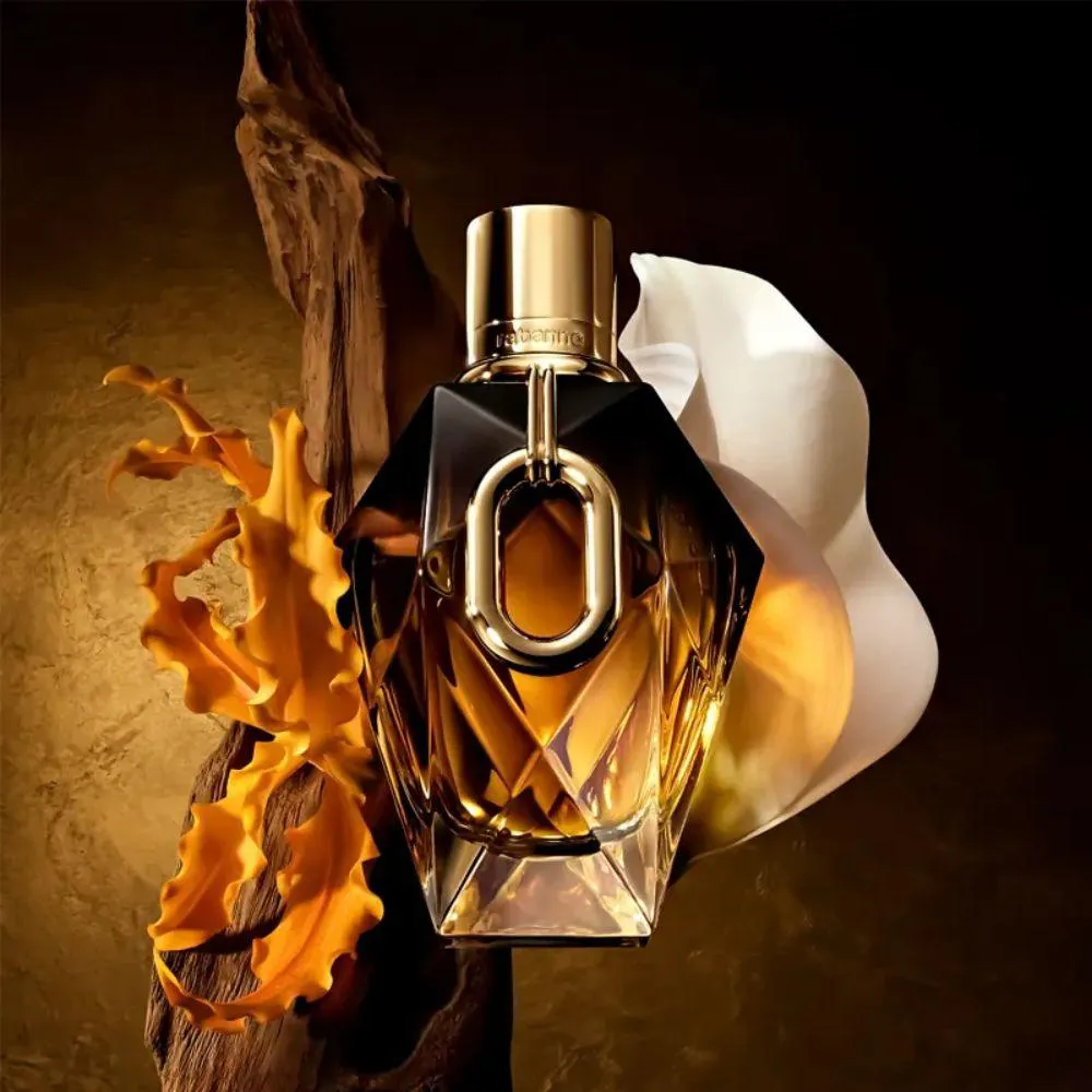 O perfume feminino Million Gold For Her, de Rabanne, desenvolve uma narrativa olfativa complexa, com notas que transitam entre o floral e o amadeirado, criando um aroma único e sedutor.