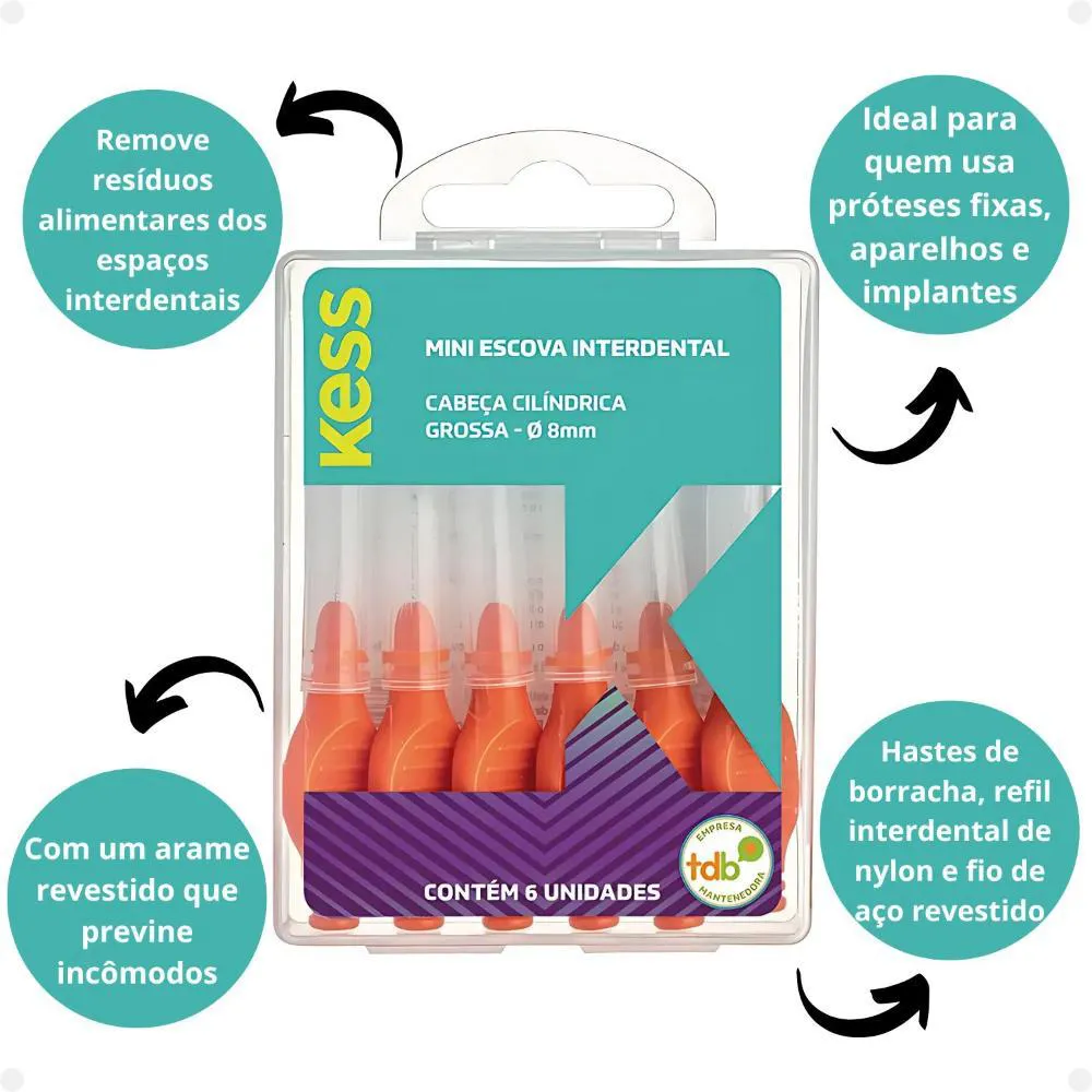 Mini Escova Interdental Kess Cabeça Cilíndrica Grosa - Ø 8Mm com 6Un Cód. 2007