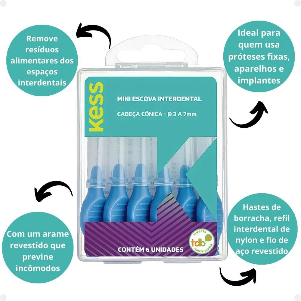 Mini Escova Interdental Kess Cabeça Cônica - Ø 3 a 7Mm com 6Un Cód. 2004