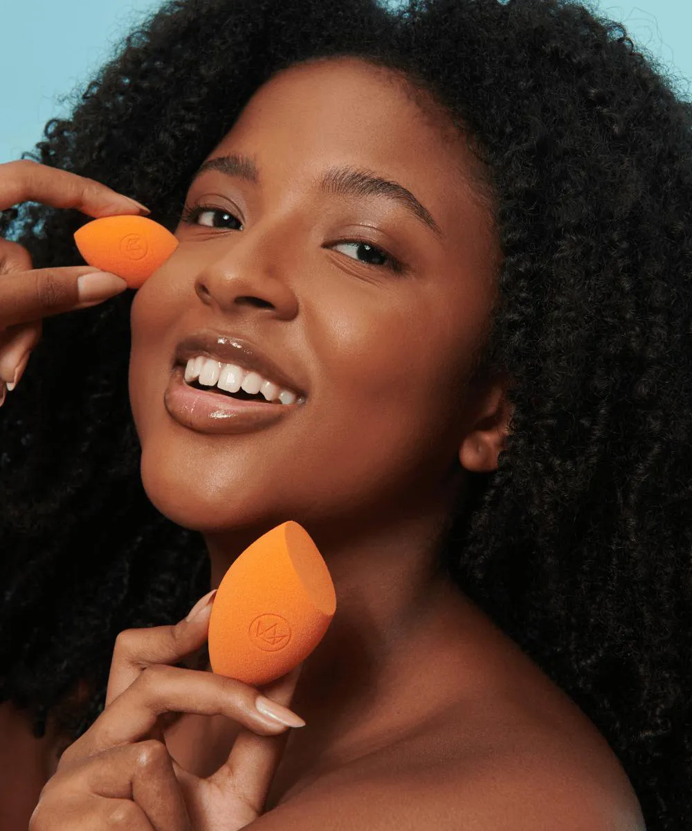 Use a esponja úmida para um acabamento mais natural ou seca para cobertura intensa. Dê leves batidinhas, sem arrastar o produto.