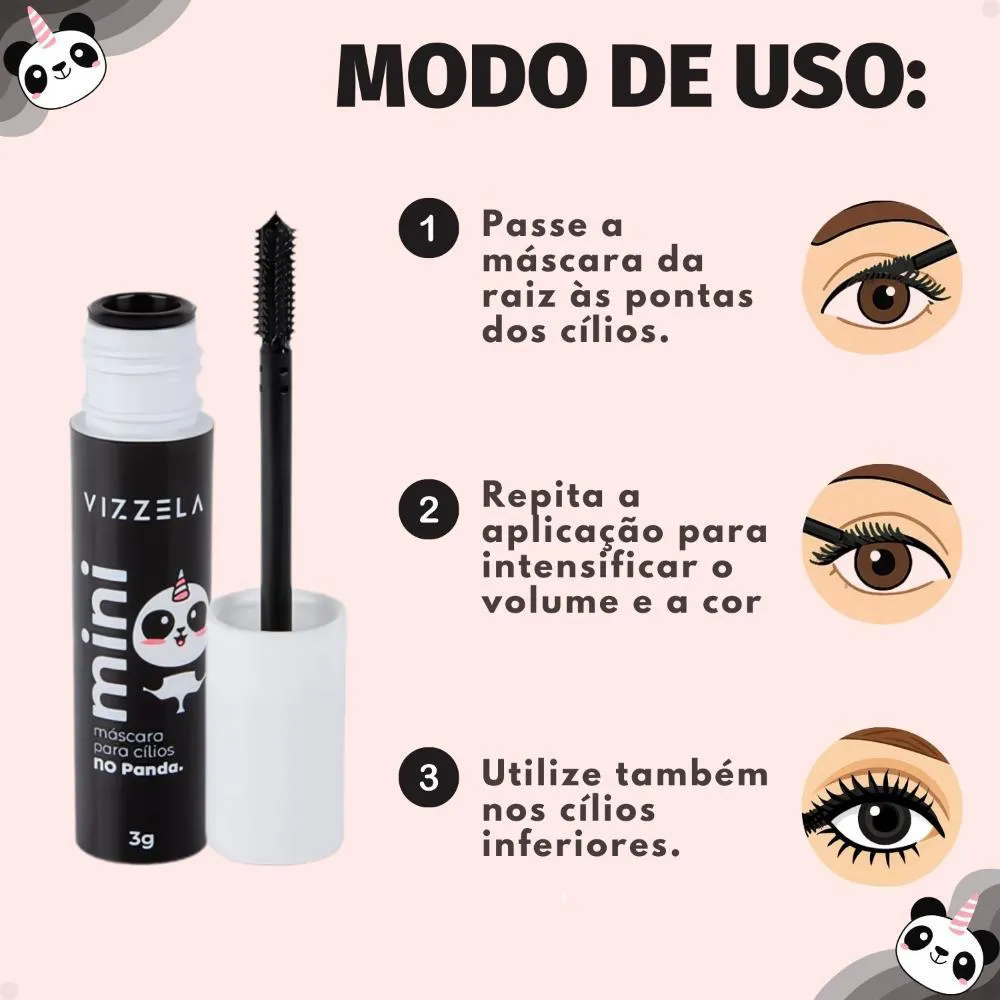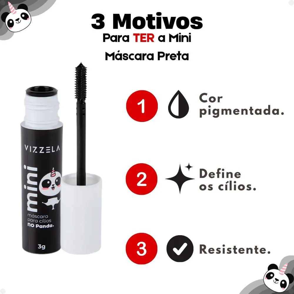 beleza natural dos seus cílios, proporcionando um olhar poderoso e expressivo em instantes.Ideal para carregar na bolsa, a Mini Máscara de Cílios Vizzela No Panda Preta 3g é um item essencial para retoques rápidos ou para compor uma