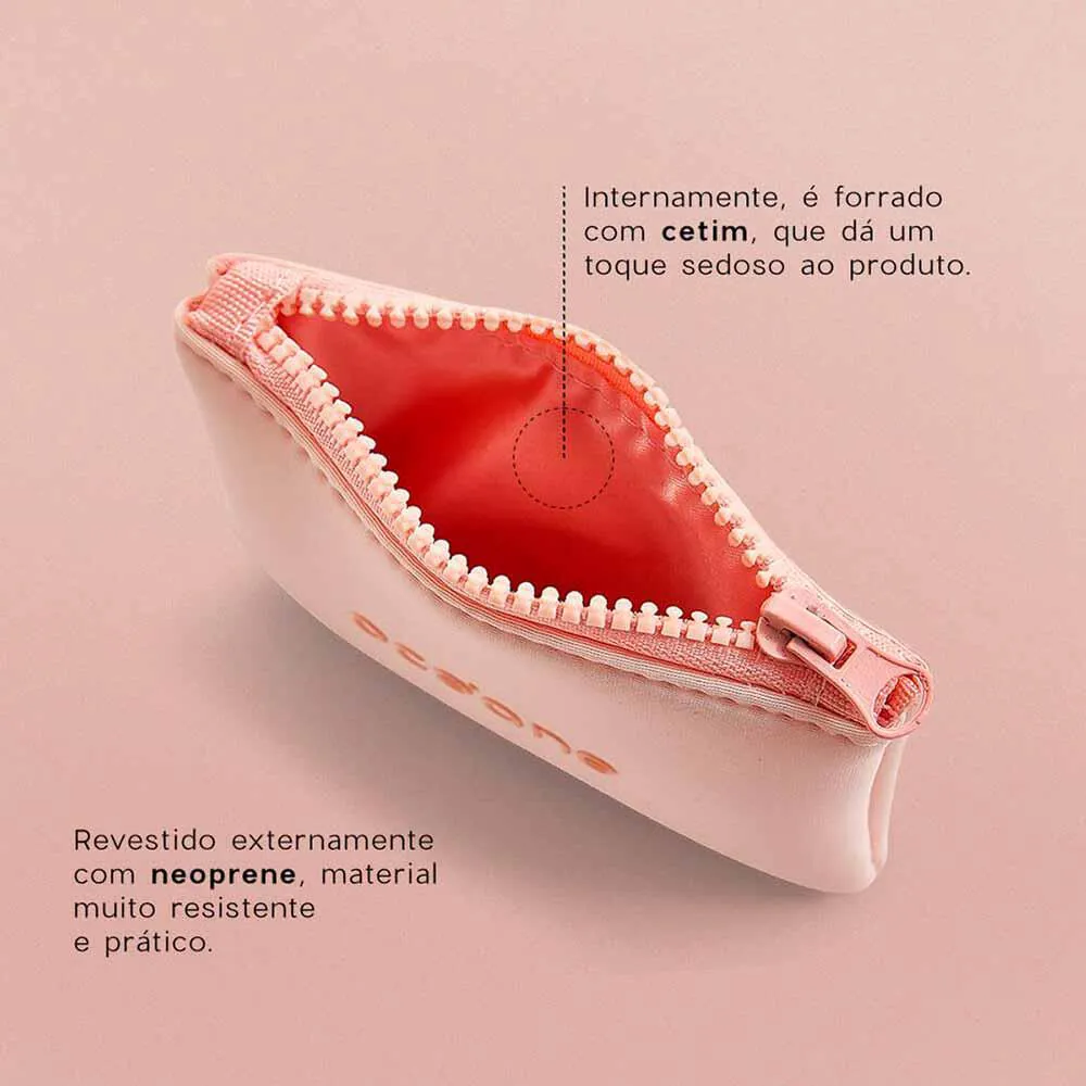 neoprene, um material resistente e flexível que protege seus cosméticos contra
