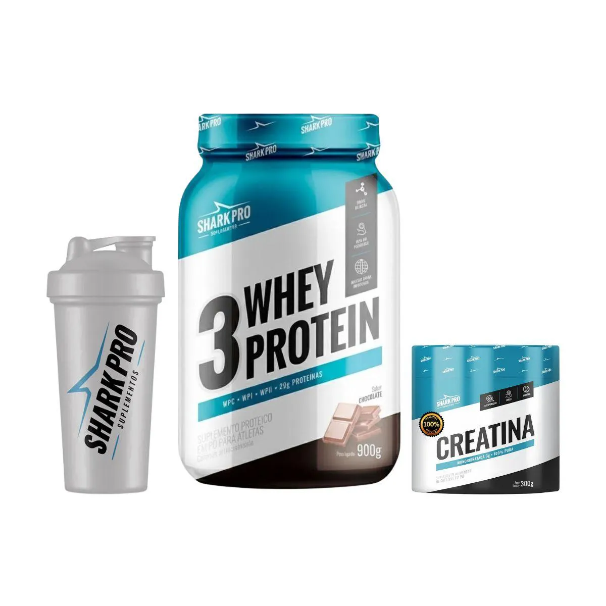 O Combo Performance Shark Pro é um kit de suplementação esportiva composto por Whey Protein 3W, Creatina e uma Coqueteleira, desenvolvido para auxiliar atletas e praticantes de atividade física na performance e recuperação muscular.