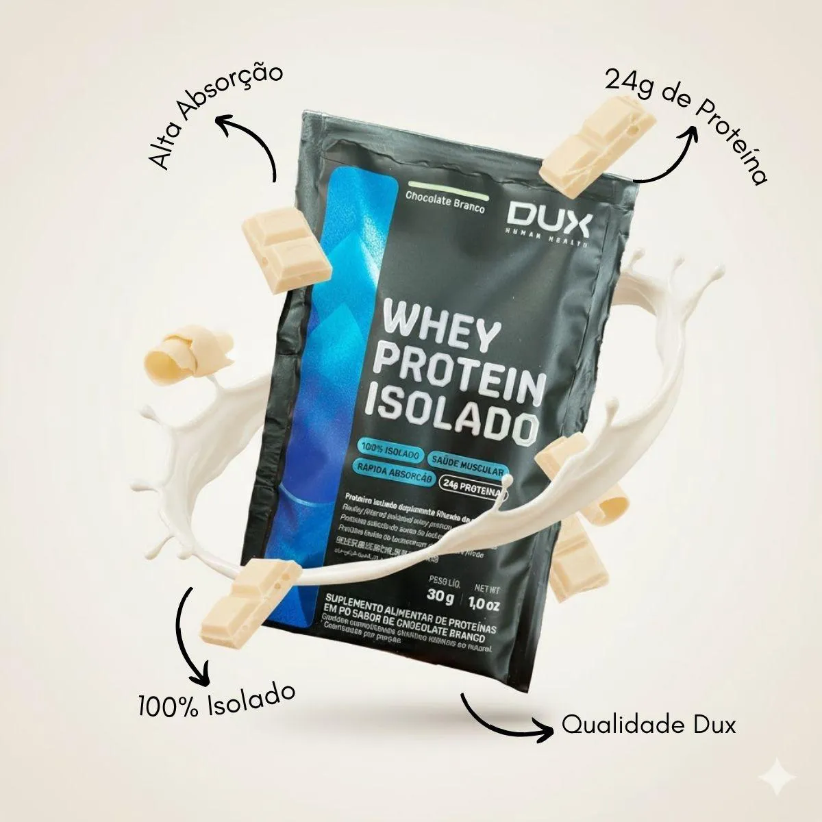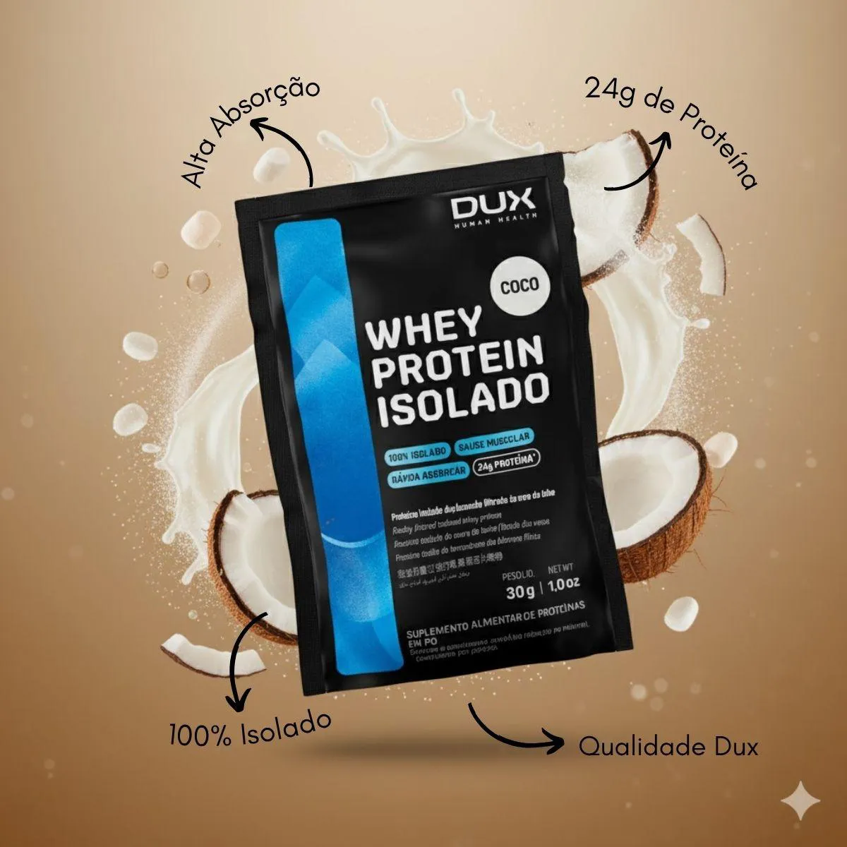 MIX 7 SACHÊS whey protein ISOLADO DUX 24G PROTEINA ALTA ABSORÇÃO + COQUETELEIRA DUX 750ML O Mix 7 Sachês Whey Protein Isolado DUX é a escolha funcional para sua nutrição diária, fornecendo TUDO QUE PRECISA PARA A ROTINA de quem busca ALTA PERFORMACE. Este blend especial de WHEY PROTEIN ISOLADO (7 SACHÊS de 24G PROTEINA cada) garante FORÇA, ENERGIA e RECUPERAÇÃO com QUALIDADE DUX. É o kit ideal para o seu TREINO INTENSO, com SABOR MARCANTE e ALTA ABSORÇÃO. DESTAQUES PREMIUM PARA SUA PERFORMACE: Este kit é um produto selecionado de alta QUALIDADE DUX, desenvolvido para quem não abre mão do desempenho e dos resultados. Cada SUPLEMENTO é formulado com pureza e eficácia: WHEY PROTEIN ISOLADO DUX (7 SACHÊS): Com 24G PROTEINA por dose, 100% PURA, é a fonte essencial de PROTEINA ISOLADA para construção e RECUPERAÇÃO do MUSCULO após o TREINO INTENSO. Possui ALTA ABSORÇÃO. VARIAÇÃO DE SABORES (Exclusividade): Inclui Neutro, Doce de Leite, Cookies, Coco, chocolate Branco, Chocolate e Cappuccino, oferecendo um SABOR MARCANTE para cada dia da semana. PUREZA DUX: Fórmulas rigorosamente limpas e seguras. Sem substâncias ilícitas, sem conservantes, sem corantes artificiais, sem lactose e sem ingredientes inferiores. MARCA RECONHECIDA PELA QUALIDADE: DUX garante que você está fornecendo o melhor para o seu corpo, com TUDO QUE PRECISA PARA A ROTINA. PORQUE ESCOLHER O KIT 7 SACHÊS WHEY PROTEIN ISOLADO DUX Este kit completo é o SUPLEMENTO ideal para quem ama cuidar do corpo e da mente, buscando otimização em todas as fases do TREINO INTENSO. A sinergia dos produtos garante: MÚSCULO E FORÇA: O Whey Protein Isolado fornece a PROTEINA necessária para o crescimento e RECUPERAÇÃO do MUSCULO. ENERGIA E PRATICIDADE: Os sachês são FÁCEIS DE PREPARAR E CONSUMIR no dia a dia, ideais para manter a ENERGIA. CONVENIÊNCIA TOTAL: TUDO QUE PRECISA PARA A ROTINA em um único kit, com variedade para não enjoar. SUGESTÕES DE USO PARA GANHO MÁXIMO DE FORÇA E BEM-ESTAR WHEY PROTEIN: Ingerir 1 sachê (24G PROTEINA) em 200ml de água ou leite após o TREINO INTENSO ou como lanche proteico, conforme sua preferência de SABOR MARCANTE. CARACTERÍSTICAS TÉCNICAS Tipo de Produto: KIT DE SUPLEMENTOS DE PROTEINA EM SACHÊ Conteúdo: 7 Sachês de Whey Protein Isolado DUX. Peso Líquido Total: 7x 30G = 210G Diferenciais: PROTEINA ISOLADA, ALTA ABSORÇÃO, SABOR MARCANTE, QUALIDADE DUX, variedade de sabores. ESTOQUE LIMITADO! Garanta o seu Kit 7 Sachês Whey Protein Isolado DUX com QUALIDADE DUX agora e transforme sua PERFORMACE PARA O TREINO. Aproveite o preço especial e tenha TUDO QUE PRECISA PARA A ROTINA! Aviso legal Consumir junto com alimentos para facilitar a assimilação. Este produto é um SUPLEMENTO dietético, não um medicamento. Suplementa dietas insuficientes. Consulte o seu médico e/ou farmacêutico.