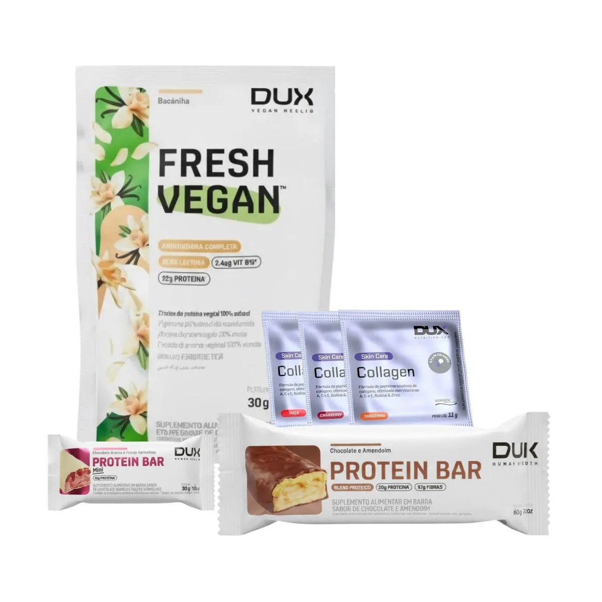 Mix Treino Completo Sache Fresh Vegan Whey Baunilha Collagen Barras Dux