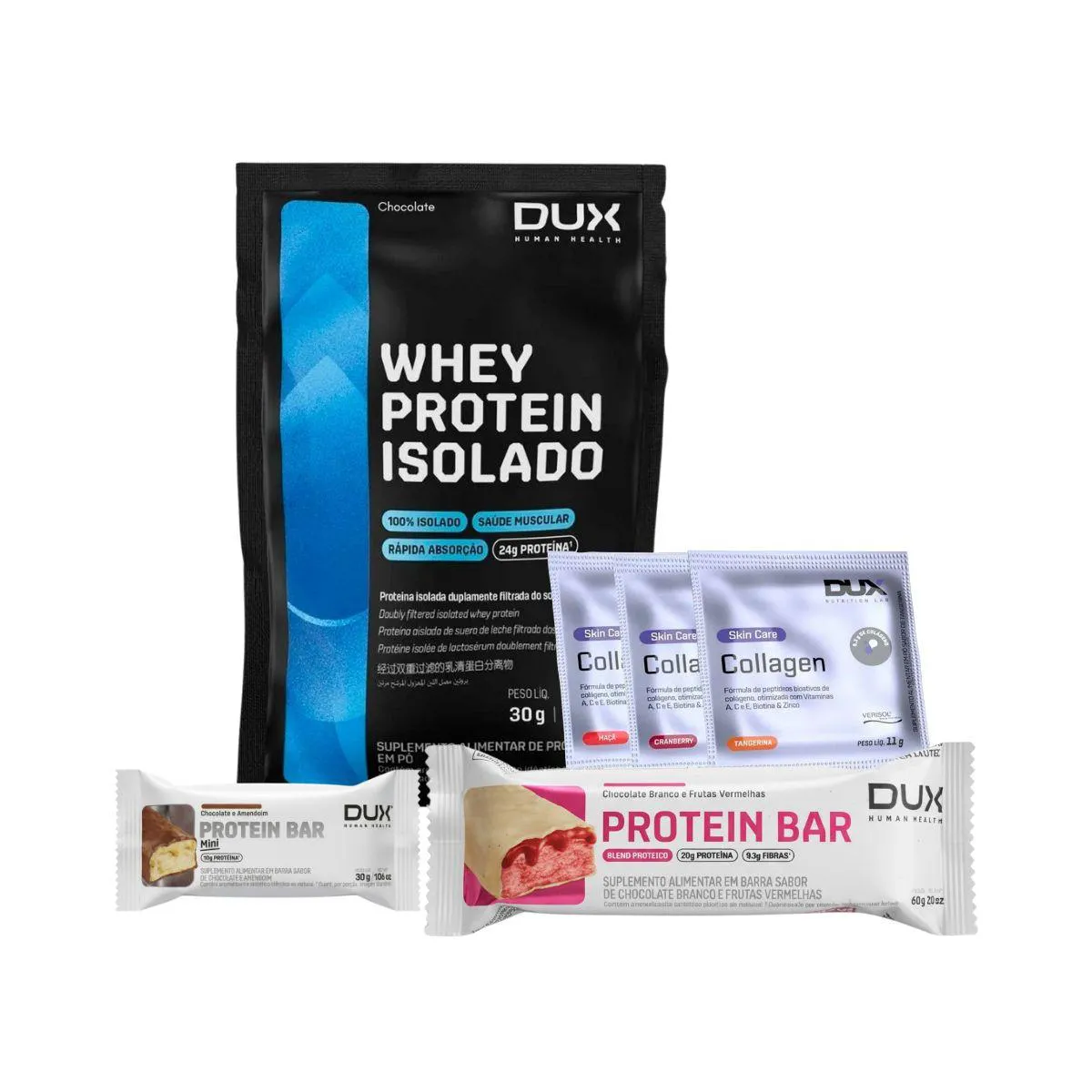 Mix Treino Completo Sache Whey 100% Isolado Collagen Barras Dux