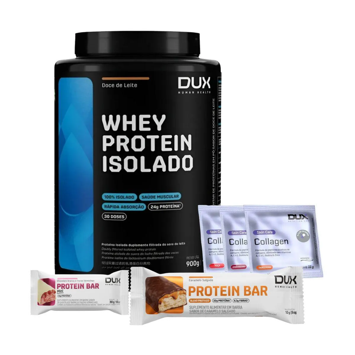 Mix Treino Completo Whey 100% Isolado Collagen Barras Dux