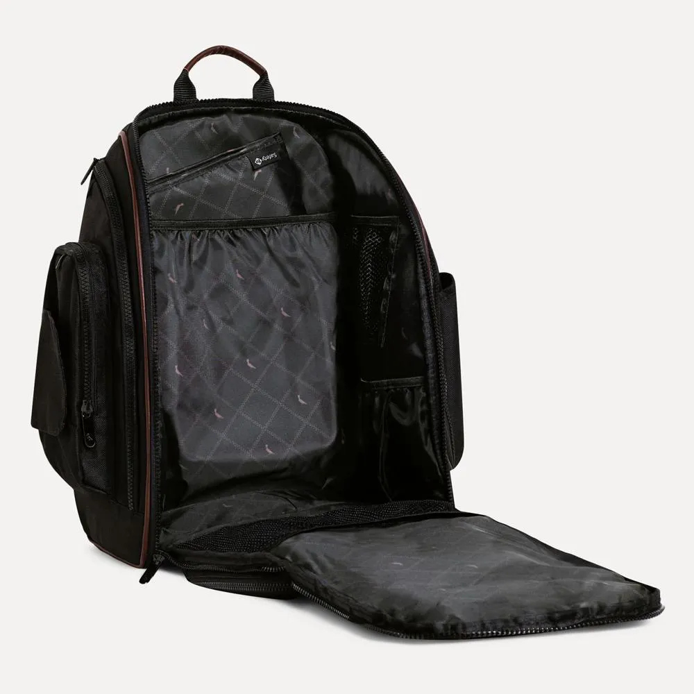 • Muitos Espaços Internos e Externos de Armazenamento, Incluindo: Trocador Impermeável Acolchoado item essencial para trocas de fraldas em qualquer lugar; Bolso Impermeável para Roupa Molhada ou Suja que mantém as roupas molhadas separadas do restante dos pertences; Bolso Lateral para Mamadeira ou Garrafa um compartimento designado para manter a mamadeira ou garrafa na temperatura adequada; Bolso Frontal com Zíper e Divisórias para organização para roupinhas, fraldas e objetos pessoais; Bolso Frontal com Ímã para Pequenos Objetos para agilizar o acesso de itens como carteira, celular e chaves do carro; Grande Zíper para Abertura Total para facilitar o acesso total ao interior da mochila; e Bolso Lateral Porta-lenços umedecidos com abertura para acesso rápido e prático.