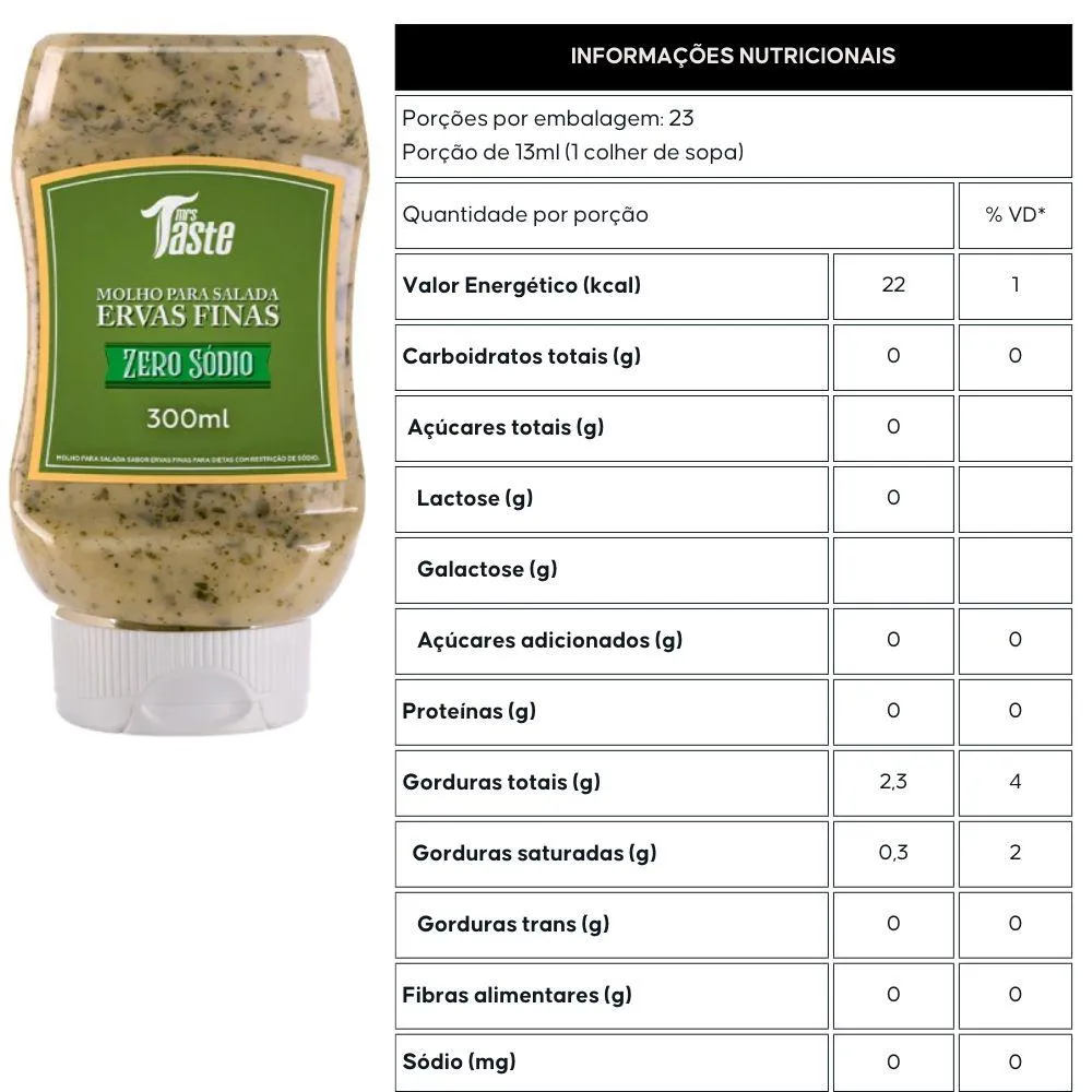 Molho para Salada Zero Ervas Finas 300Ml - Mrs Taste