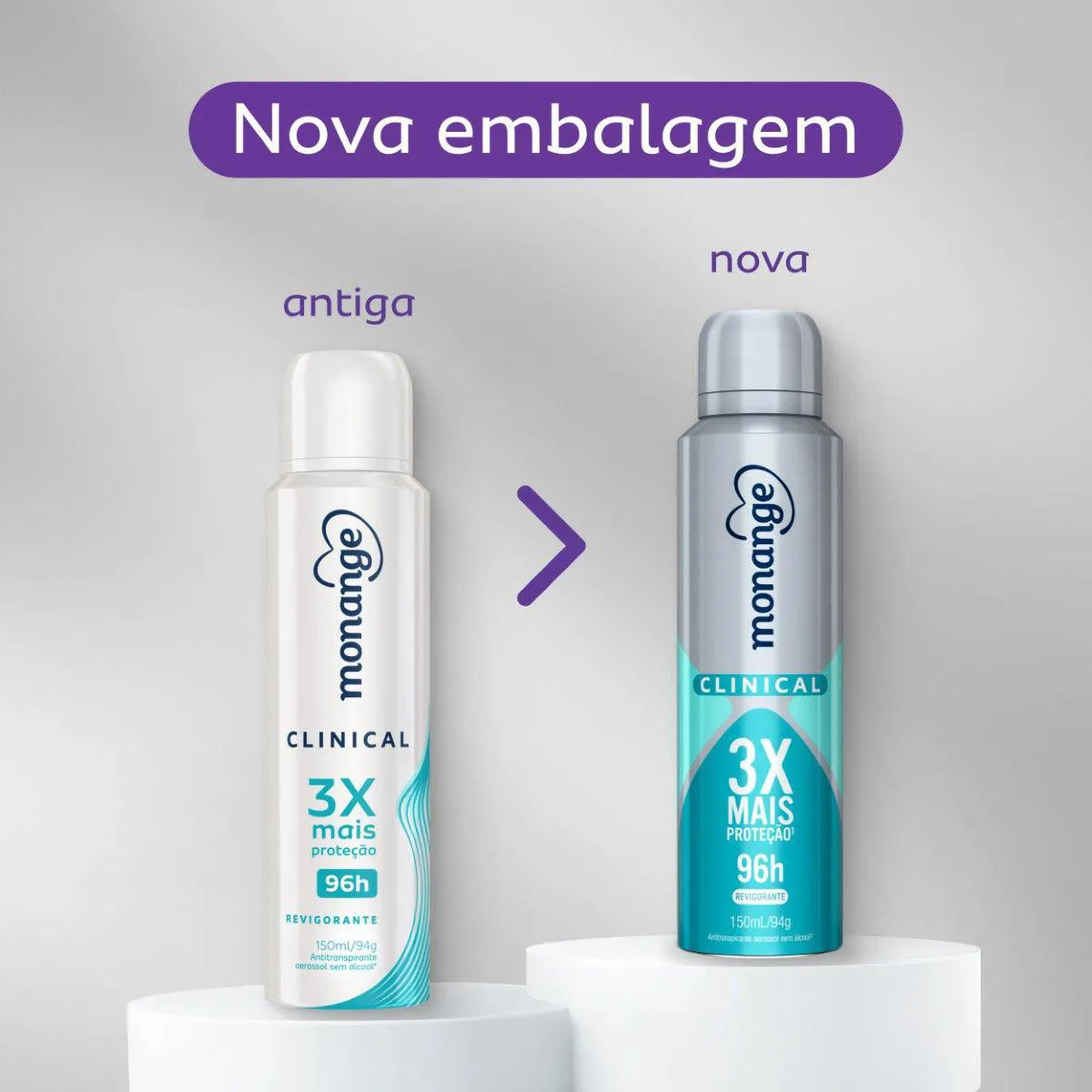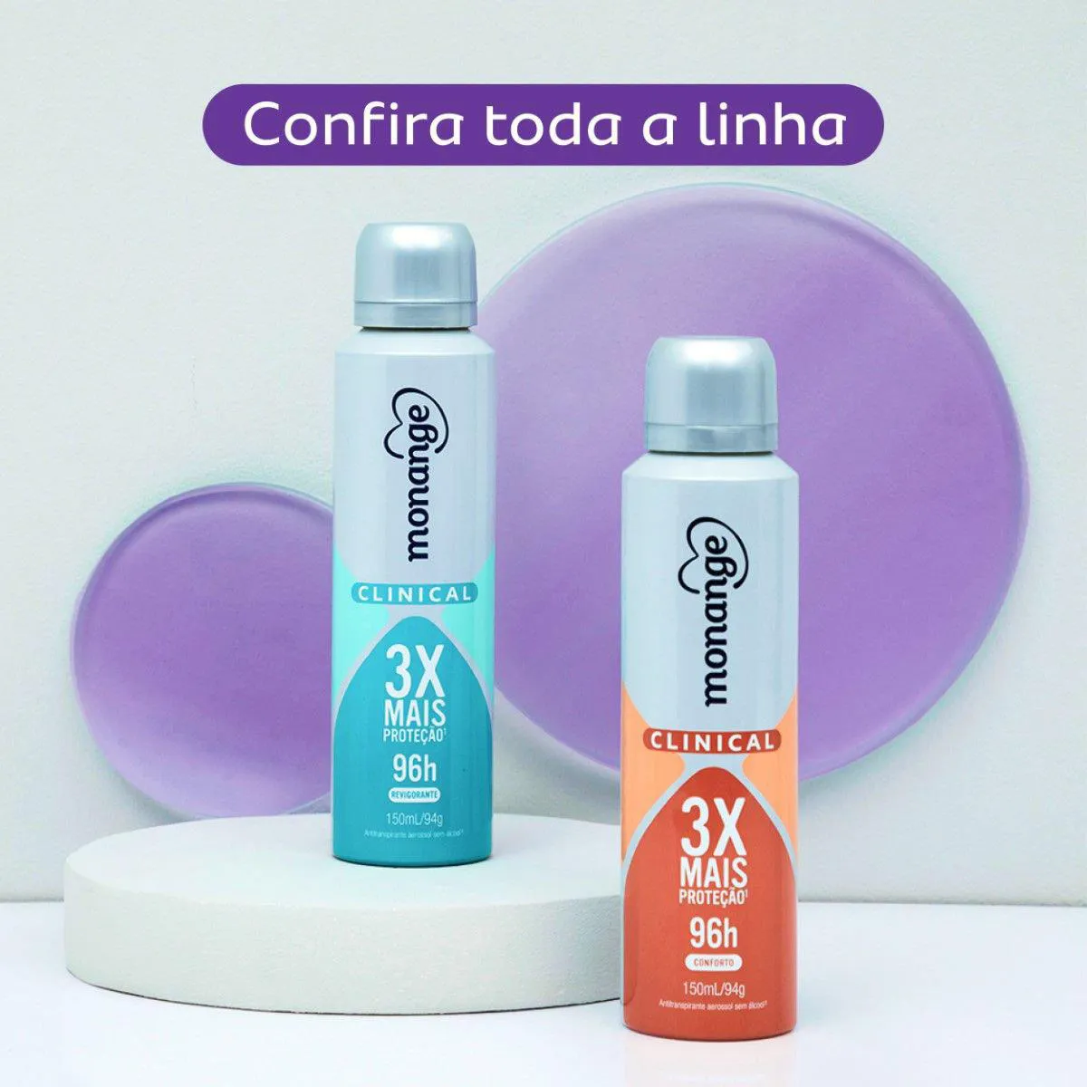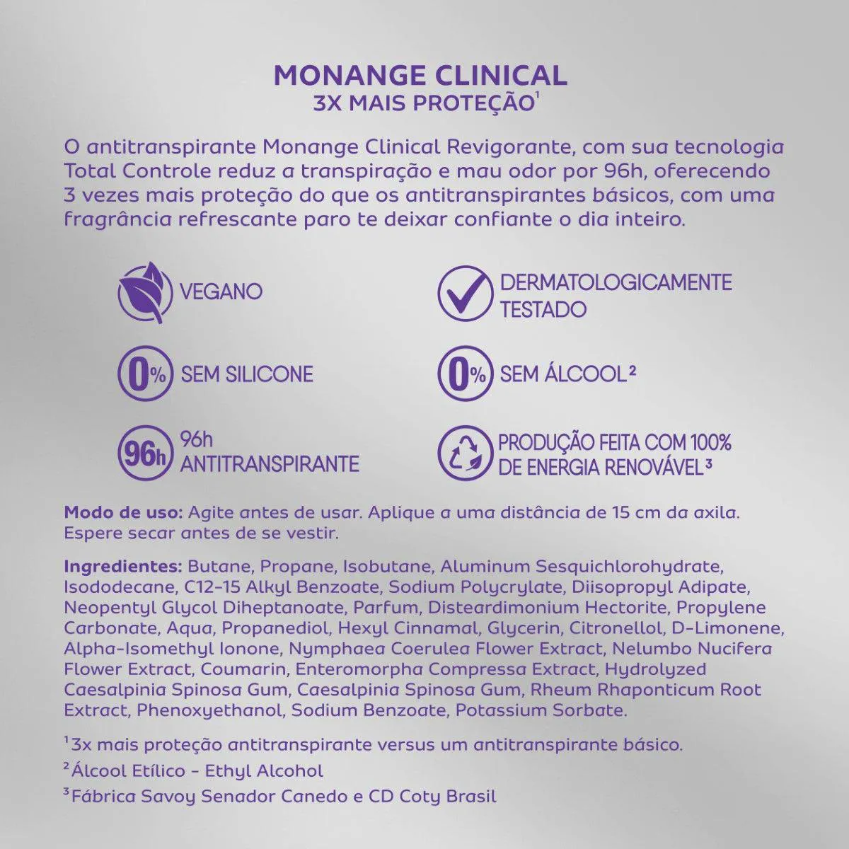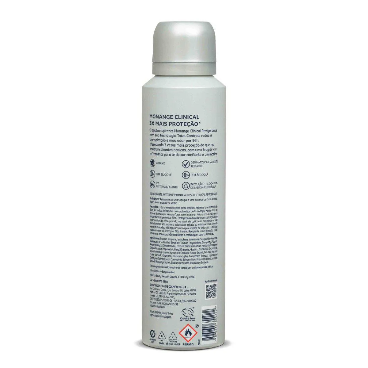 Desodorante Antitranspirante Aerosol Monange Clinical Revigorante Feminino 96h 150ml