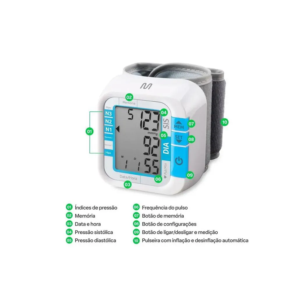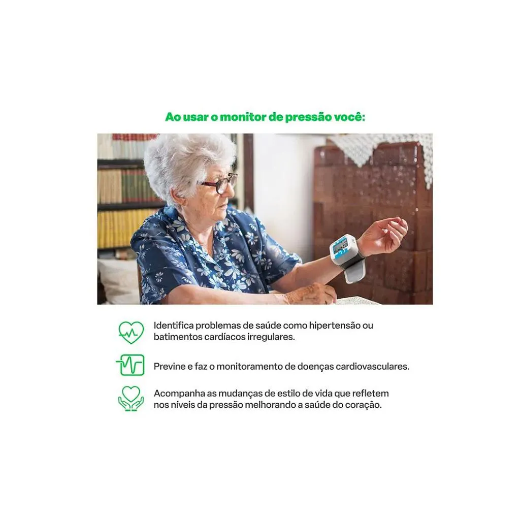 - Usar apenas em punhos com circunferência entre 13,5 a 21,5 cm, conforme especificação técnica.