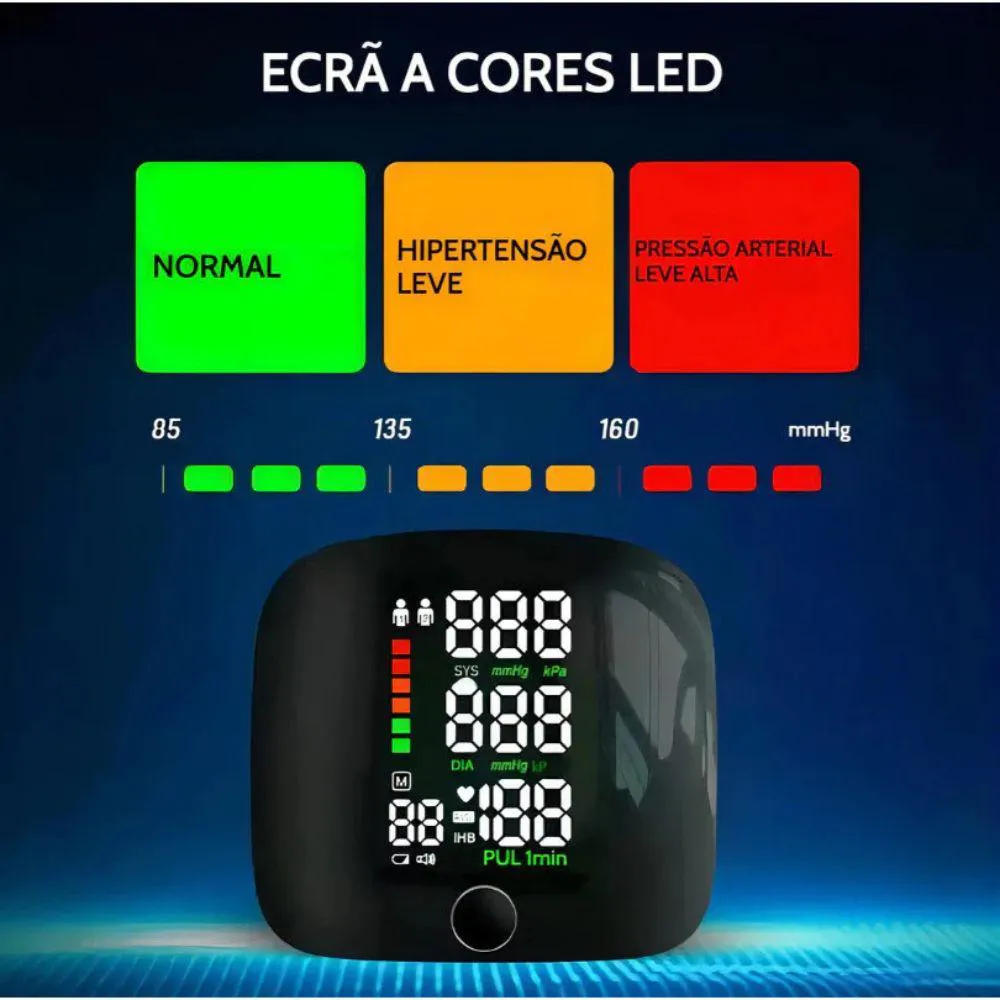 Monitor de Pressão Arterial de Pulso Recarregável Alta Bp Esfigmomanômetro Branco