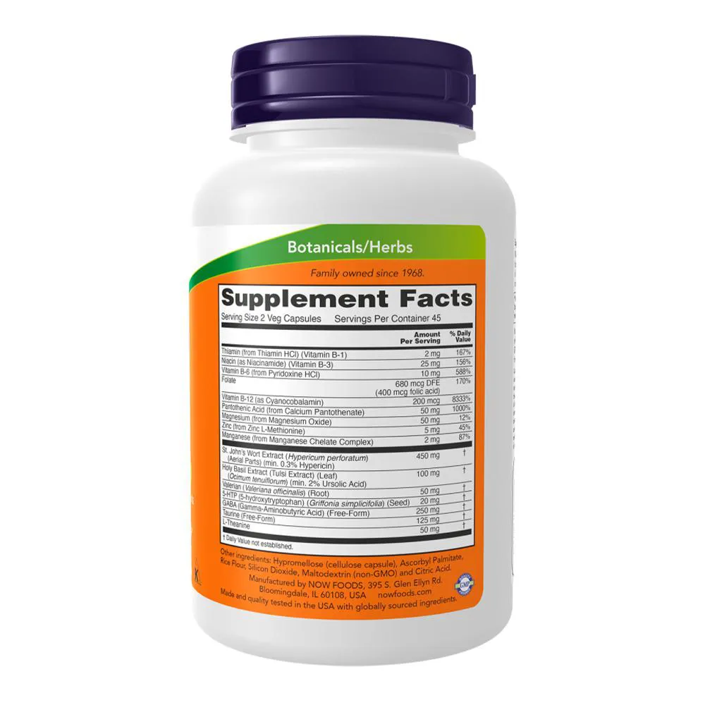 Now Foods Mood Support com Erva de São João, 90 Cápsulas Veganas para Bem-Estar Emocional e Equilíbrio do Humor - Suplemento Natural