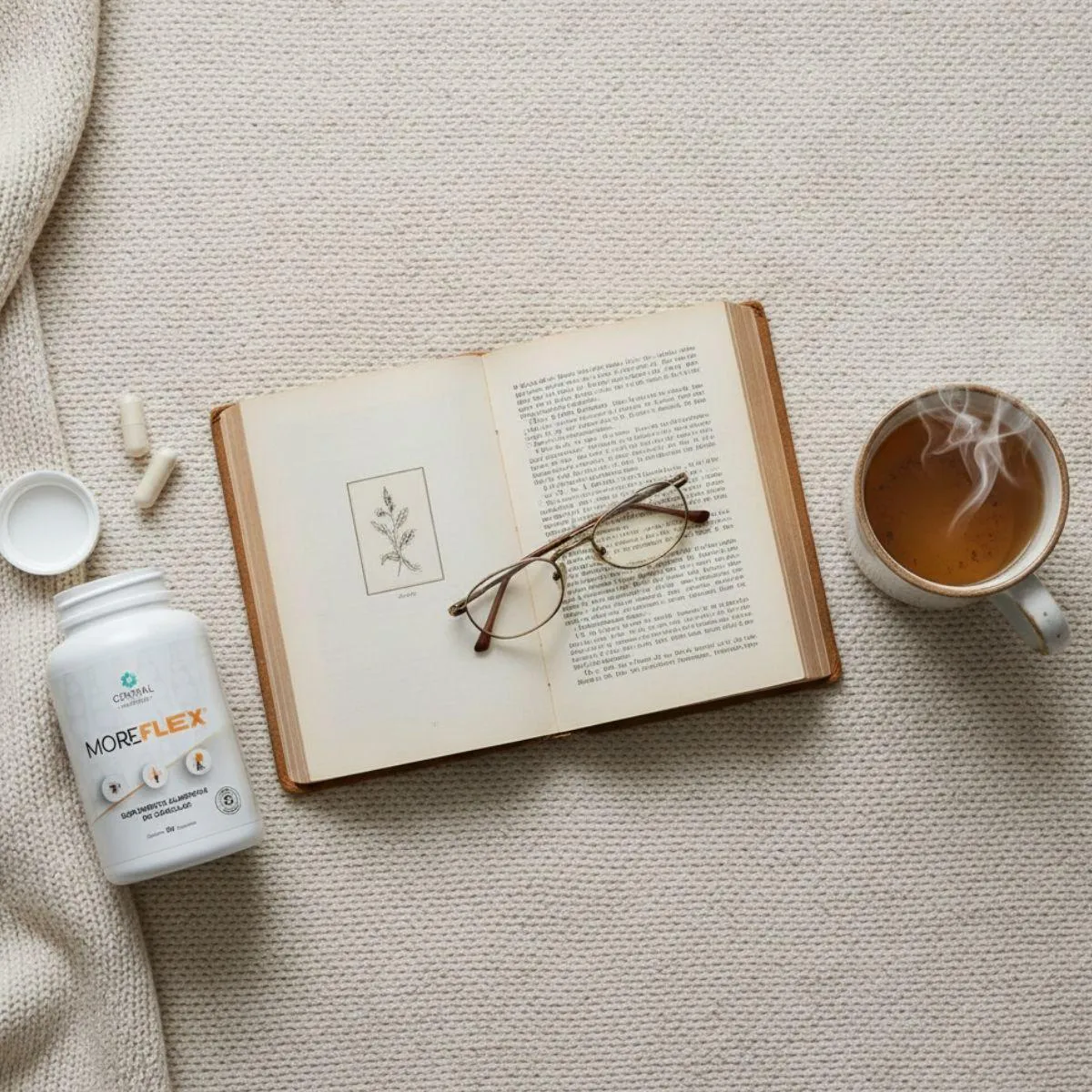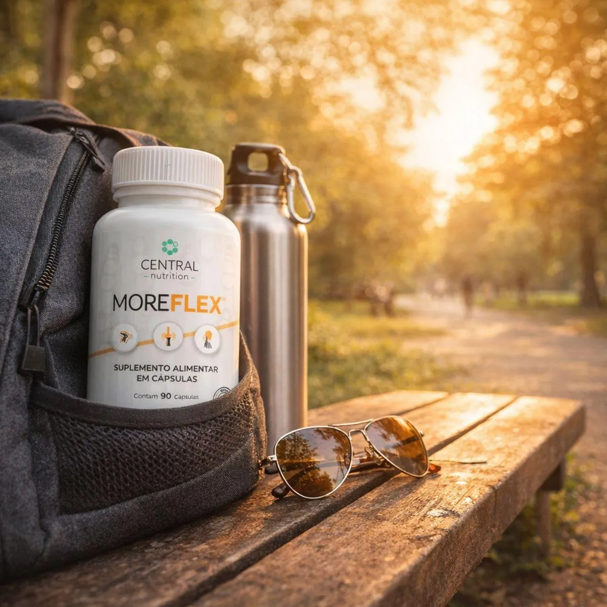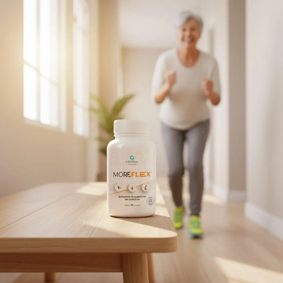 Moreflex reúne componentes que trabalham em conjunto para apoiar as articulações. A formulação ativa inclui colágeno tipo II não desnaturado, bisglicinato de magnésio, metilsulfonilmetano (MSM), ácido hialurônico, extrato de cúrcuma e vitamina D3. Esses ingredientes são combinados com excipientes como amido de milho, celulose microcristalina, estearato de magnésio, dióxido de silício, hidroxipropilmetilcelulose e corantes naturais. Cada frasco contém 90 cápsulas. O produto é livre de glúten, lactose e açúcares e utiliza cápsulas de liberação controlada para melhor biodisponibilidade. O colágeno tipo II é obtido a partir de fontes específicas e não desnaturado, enquanto o MSM e o ácido hialurônico são de grau farmacêutico, garantindo pureza. A cúrcuma adiciona compostos antioxidantes naturais, e a vitamina D3 em forma de colecalciferol contribui para a absorção de cálcio. Conforme indicado pelo fabricante, a recomendação de consumo para adultos é de três cápsulas ao dia. Este suplemento não deve substituir refeições nem se destina a prevenir ou curar doenças. Indivíduos que fazem uso de medicamentos, gestantes, lactantes ou pessoas com condições de saúde devem consultar um profissional antes de iniciar o uso. Conserve em local seco, protegido da luz e da umidade, e mantenha longe do alcance de crianças. O Moreflex vem em embalagem prática para 30 dias de suplementação e pode ser associado a uma dieta equilibrada e à prática de atividade física regular, conforme orientação profissional.