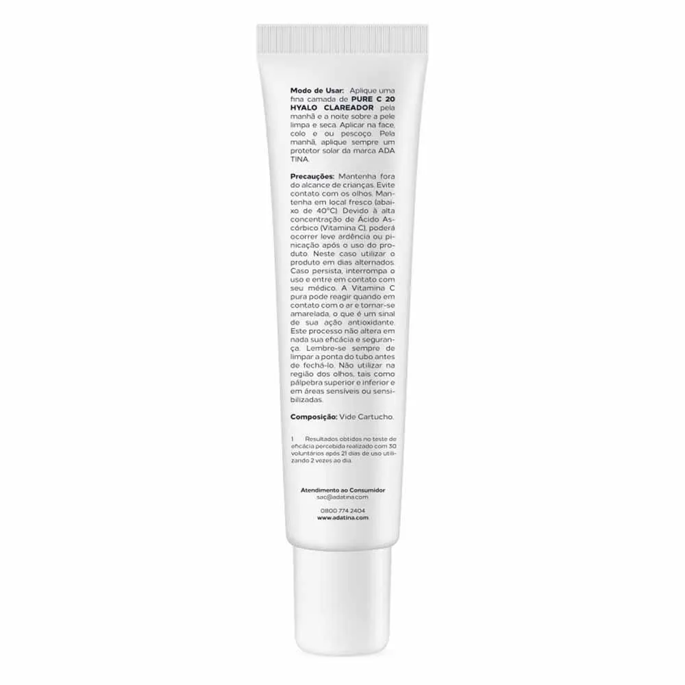Pure C 20 Hyalo Clareador é um mousse facial anti-idade da Ada Tina, formulado com