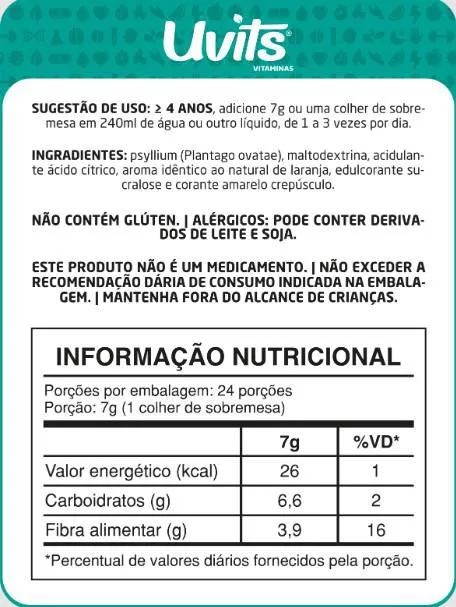 Conteúdo da Embalagem:Cada embalagem contém 174g de Mucil Psyllium Uvits, garantindo um suprimento generoso para atender às suas necessidades de saúde.