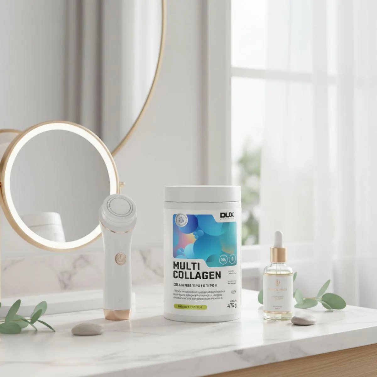 - Enriquecido com vitamina c, ácido hialurônico e minerais que auxiliam na síntese de colágeno e hidratação dos tecidos.