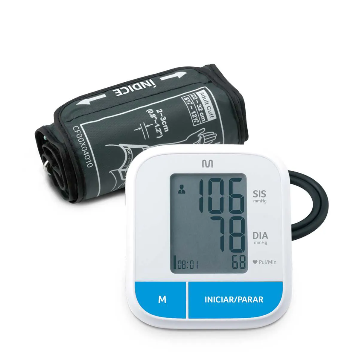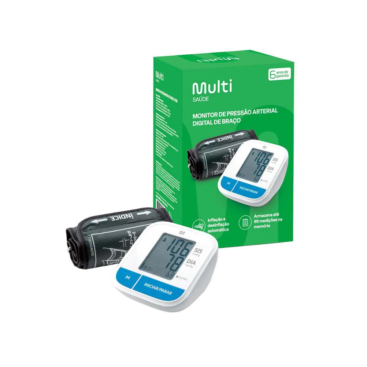 O Monitor de Pressão Arterial da MULTILASER é um monitor digital destinado a medir a pressão arterial e a taxa de batimentos cardíacos, com uma circunferência do pulso variando de 22 cm a 32 cm (22 a 42 cm) (cerca de 8¾˝ a 12½˝) ou 22cm a 42cm (cerca de 8¾˝ a 16½˝) Destina-se apenas ao uso doméstico em adultos.