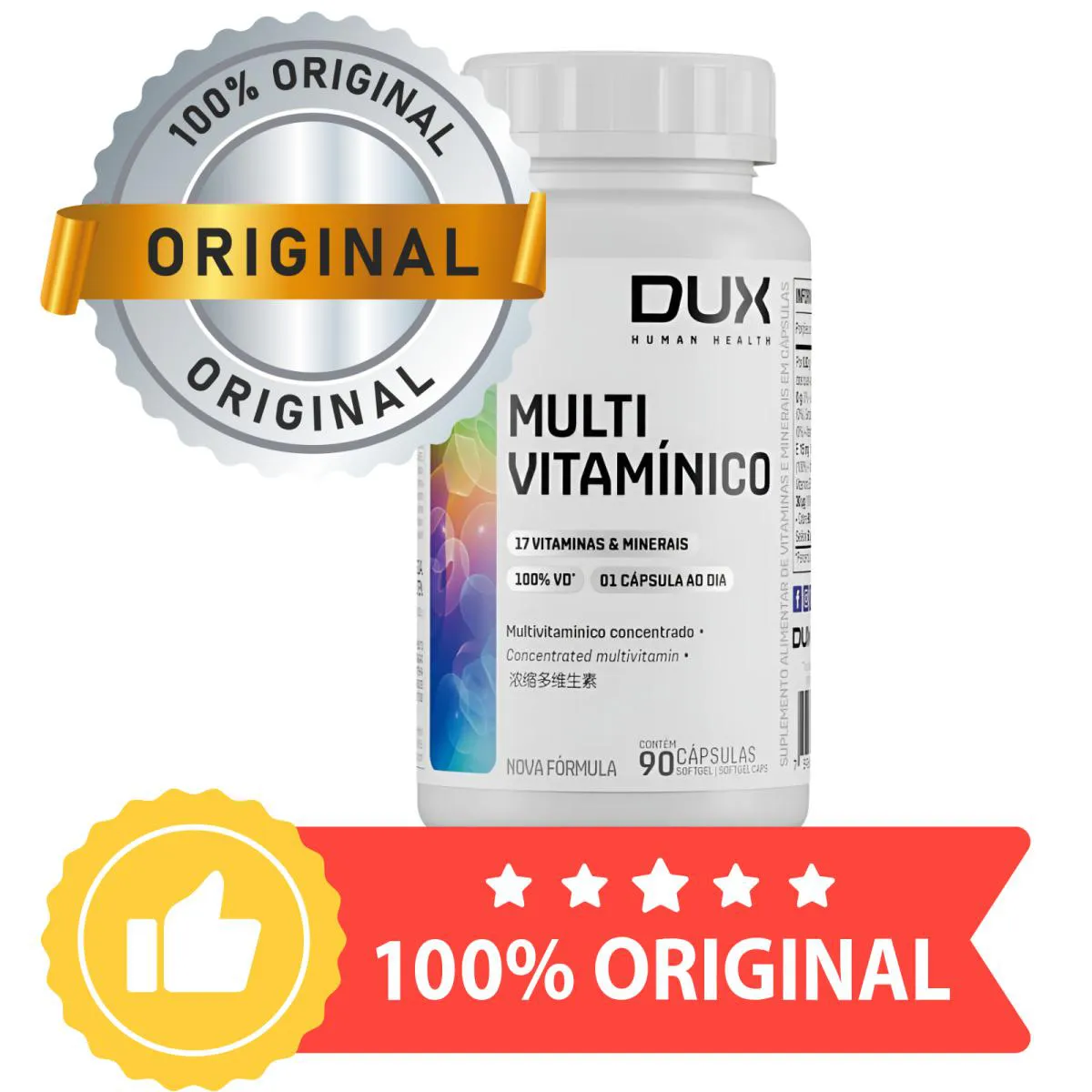 Multivitamínico Dux 90 Cápsulas Suplemento Diário com 22 Vitaminas e Minerais Saúde Imunidade Energia e Vitalidade