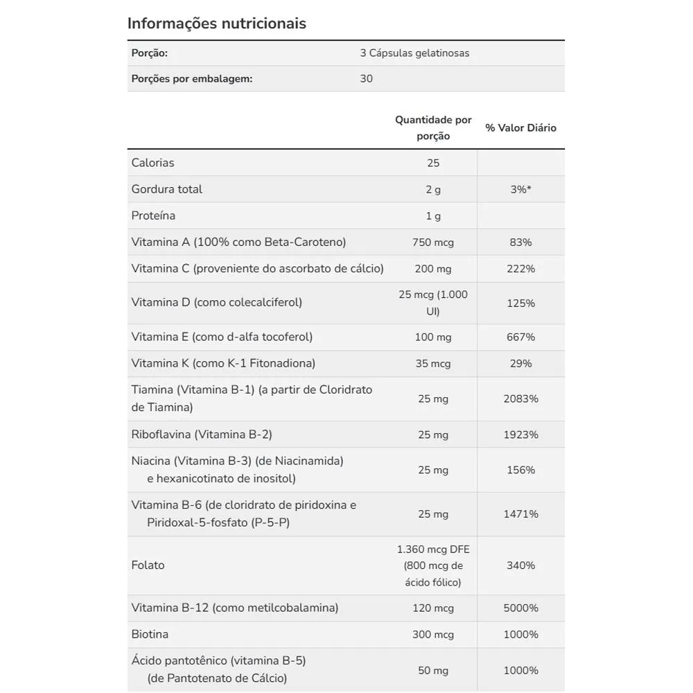 2. Com uma mistura exclusiva de vitaminas e minerais essenciais, incluindo vitaminas do complexo B para energia, ferro para suporte geral e cálcio para manutenção, este multivitamínico foi desenvolvido para complementar a alimentação e contribuir para o equilíbrio do organismo feminino, sem alegar benefícios médicos.