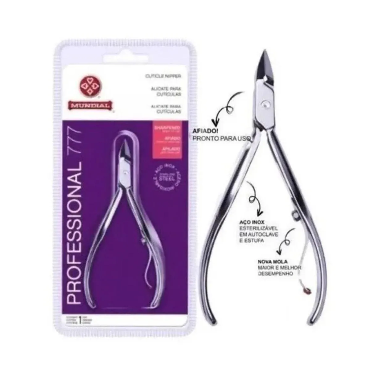O Kit 3 Alicates Mundial Profissional 777 oferece alta precisão, resistência e conforto para manicures e pedicures exigentes. Produzidos em aço inoxidável de qualidade profissional, garantem corte afiado e desempenho superior, ideais para uso contínuo em salões ou cuidados pessoais. Benefícios:
