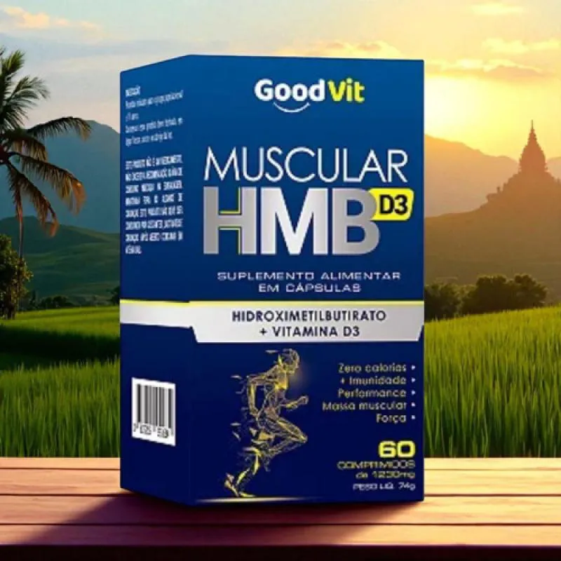 O Good Vit Muscular HMB D3 é um suplemento alimentar formulado com HMB (Hidroximetilbutirato) e Vitamina D3, desenvolvido para auxiliar no aumento da força, manutenção e ganho de massa muscular, além de contribuir para o desempenho físico e suporte imunológico.
