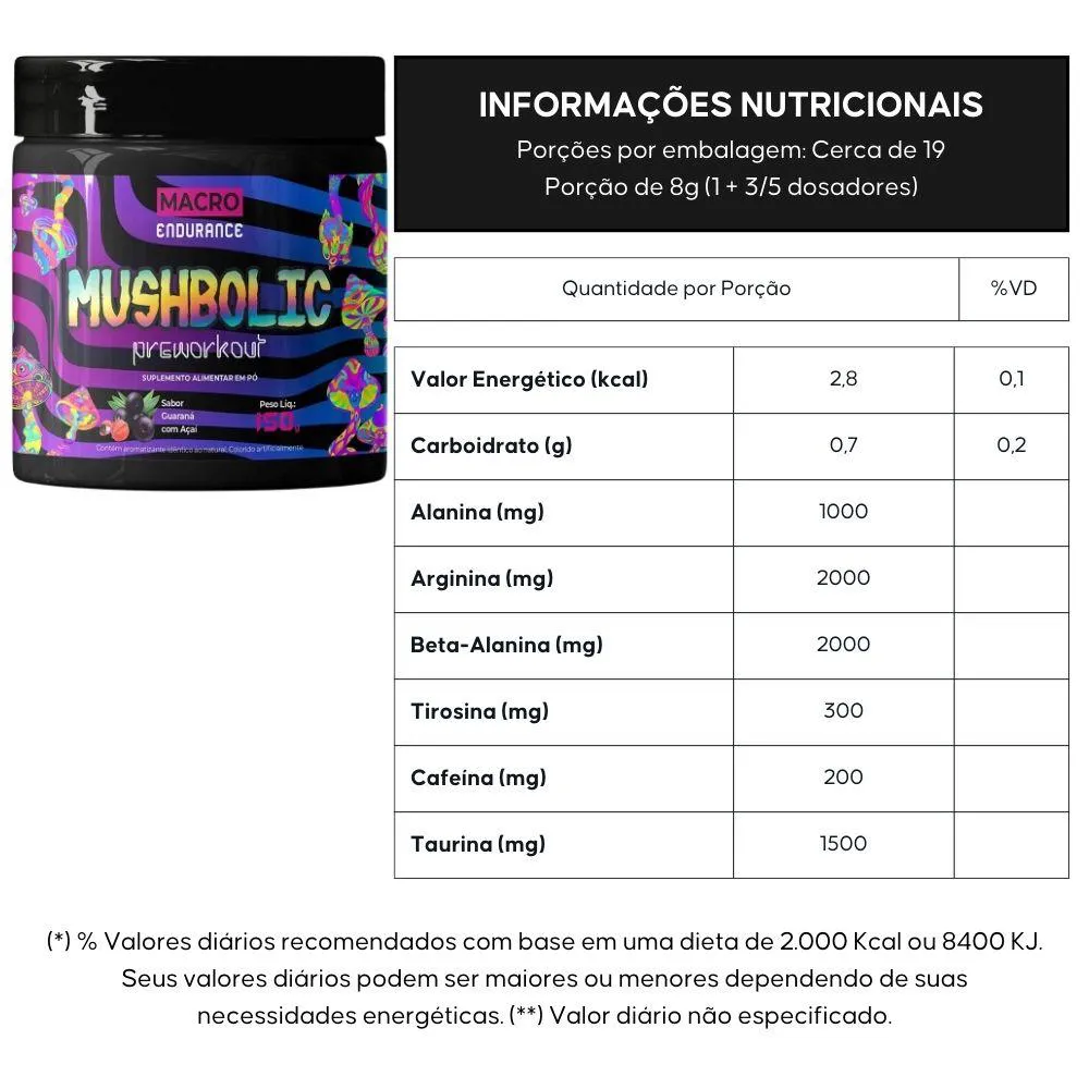 Mushbolic Pré Treino 150G - Macrophytus Guaraná COM Açaí