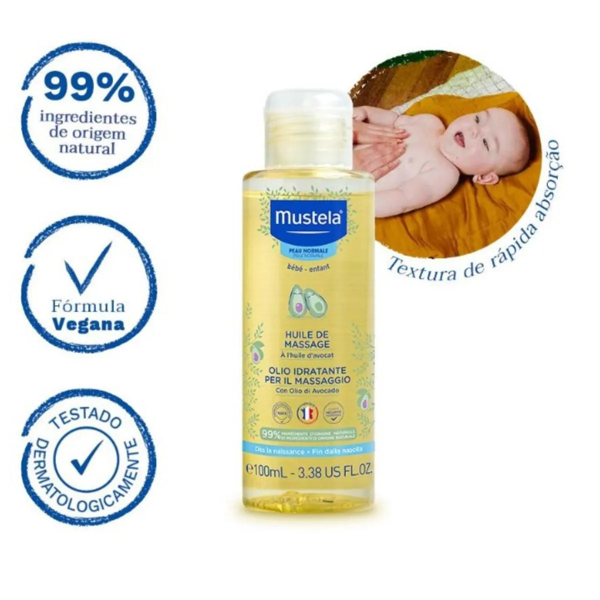 Óleo de massagem para bebês e crianças. Mustela Bébé - Enfant Huile de Massage proporciona um momento relaxante com benefícios hidratantes e calmantes.