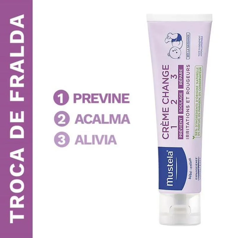 Mustela Creme é recomendado para proteger,prevenir, acalmar e aliviar os sintomas das assaduras causadas na pele do bebê, deixando sensação de ardência, vermelhidão e incômodo. O uso do creme visa favorecer o desaparecimento das vermelhidões e promover uma renovação celular intensa melhorando o aspecto da pele. Esta versão é exibida em bisnaga com 110g.