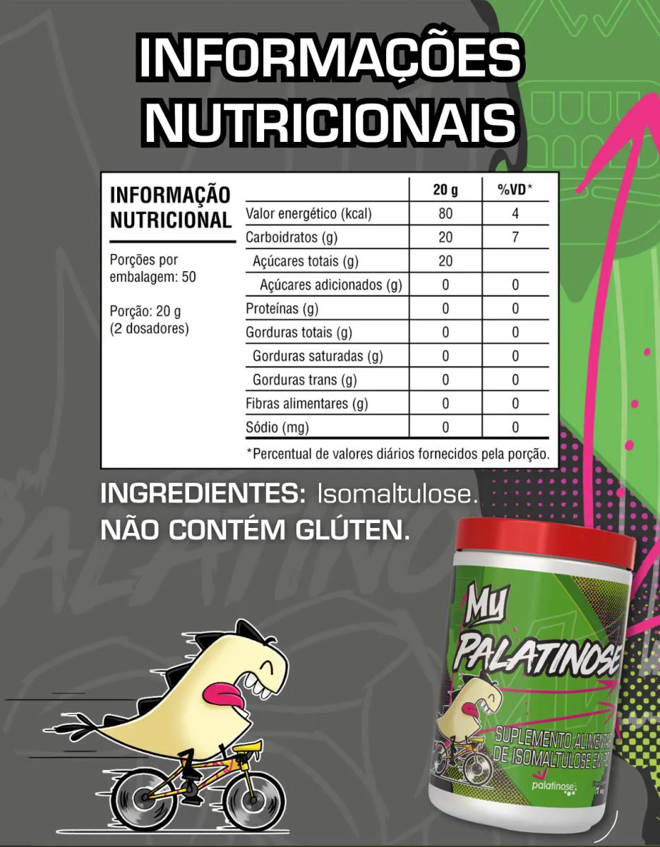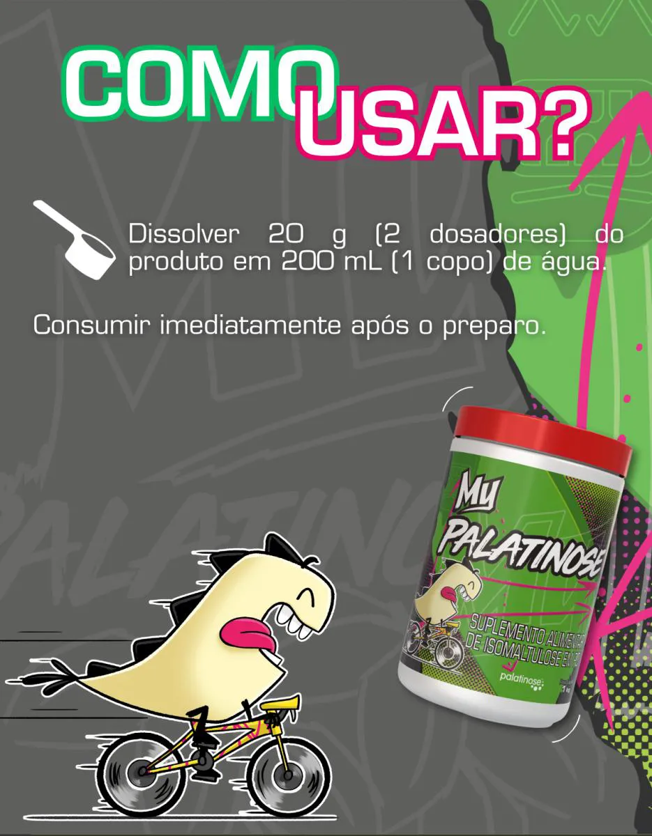 My Palatinose – A energia que não te abandona nem na última subida da vida! Tomou My Palatinose e pronto: modo resistência infinita ativado!O mascote já tá ali, pedalando com aquela cara de quem decidiu que parar não é opção e que só descansa quando cruzar a linha de chegada!Esse suplemento é tipo aquela energia estável e confiável, que não gera pico maluco e nem te deixa na mão. É força constante, perfeita pra treinos longos, cárdio, bike, corrida ou até pra aguentar o dia inteiro com disposição de atleta e alma de campeão.Misturou? Você oficialmente entrou no modo “combustível premium”.Sem drama, sem fadiga precoce, aqui é endurance com estilo e sorriso no rosto!My Palatinose – Porque quem tem energia constante... vai mais longe e ainda chega rindo!