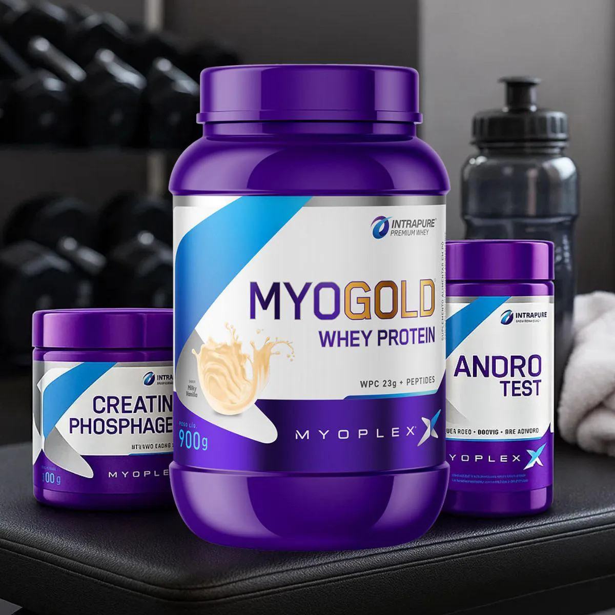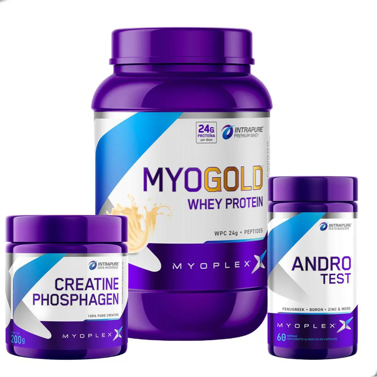 O conjunto Myo Gold + Creatine Phosphagen + Andro Test Myoplex apresenta uma proteína do soro do leite com , um suplemento de creatina monohidratada micronizada e um suplemento em cápsulas com extratos de plantas e minerais. O Myo Gold oferece proteínas concentrada e isolada, sem açúcares adicionados; a Creatine Phosphagen fornece creatina pura em pó; e o Andro Test contém feno-grego, boro e zinco. Cada item é fabricado com matérias-primas certificadas, seguindo normas sanitárias e sem glúten ou lactose. Destinado a adultos que buscam variedade e praticidade na suplementação, o kit deve ser utilizado de acordo com as instruções de cada rótulo e sempre associado a uma dieta equilibrada. Armazene em local seco, fresco e protegido da luz. A Myoplex destaca a qualidade e a rastreabilidade de seus suplementos, oferecendo confiança e segurança em cada combinação. Para assegurar a confiança do consumidor, a Myoplex segue boas práticas de fabricação e respeita todas as normas vigentes, incluindo as relacionadas à rotulagem e à ausência de substâncias proibidas. Os suplementos são desenvolvidos com o suporte de nutricionistas e especialistas e passam por monitoramento contínuo de qualidade. A marca reforça a necessidade de aliar a suplementação a uma alimentação diversificada, prática regular de atividades físicas orientadas e hidratação adequada. Para assegurar a confiança do consumidor, a Myoplex segue boas práticas de fabricação e respeita todas as normas vigentes, incluindo as relacionadas à rotulagem e à ausência de substâncias proibidas. Os suplementos são desenvolvidos com o suporte de nutricionistas e especialistas e passam por monitoramento contínuo de qualidade. A marca reforça a necessidade de aliar a suplementação a uma alimentação diversificada, prática re