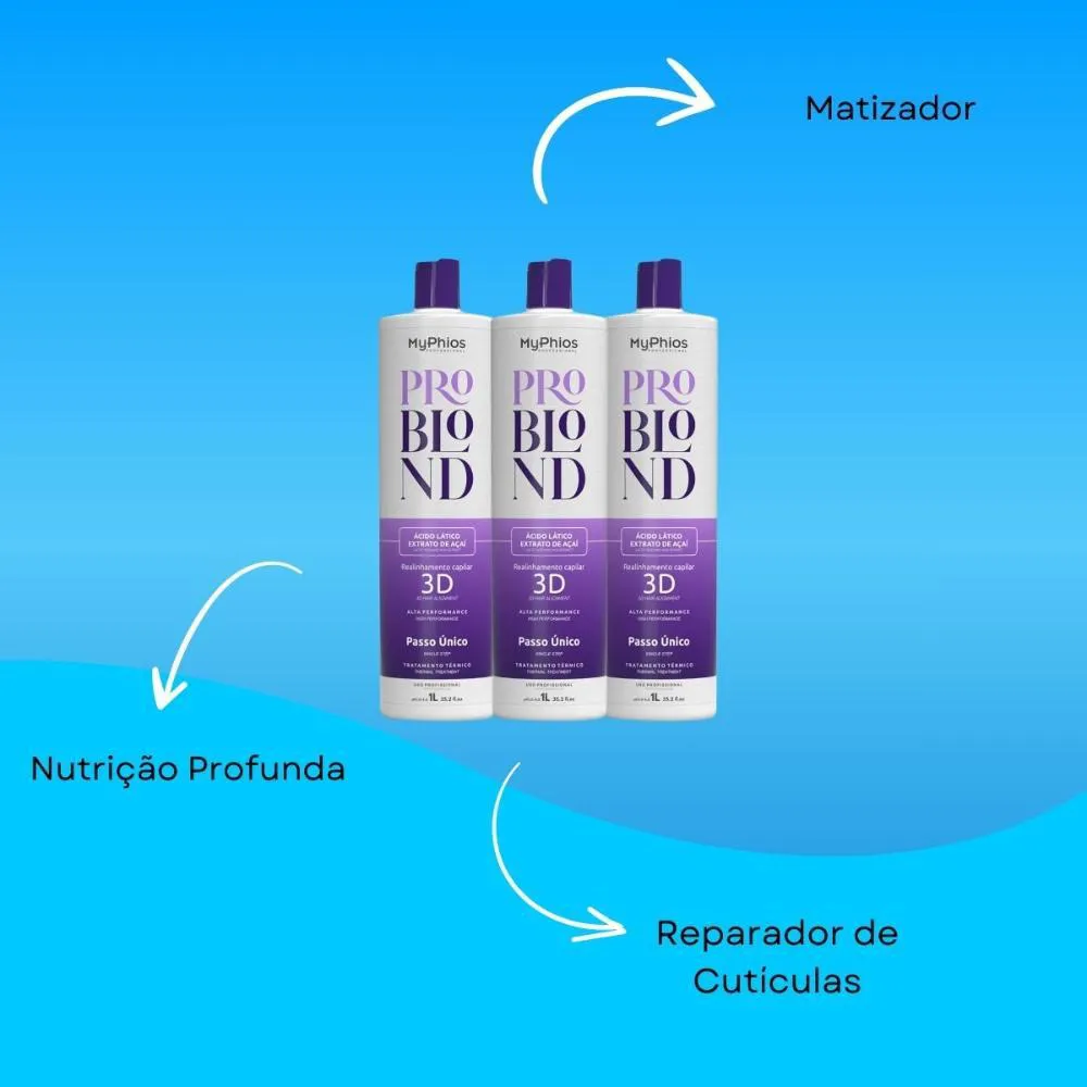 03 Unidades MyPhios Professional ProBlond Realinhamento Capilar 1L