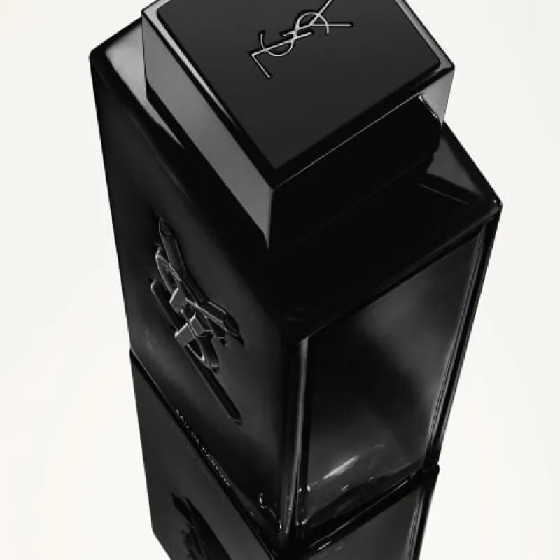 O frasco de MYSLF é elegante e fluido, um monólito laqueado em nuances de preto, onde você pode se ver. No coração do frasco, o icônico logotipo YSL Cassandre está incorporado ao vidro.
