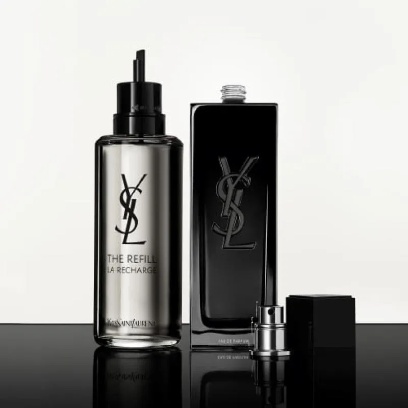 MYSLF é mais do que um perfume, é um compromisso da YSL BEAUTY em reduzir seu impacto no meio ambiente. As garrafas e caixas de MYSLF são recicláveis, e as garrafas de vidro contêm vidro reciclado. As caixas são certificadas FSC™ MIX, apoiando o manejo florestal sustentável. Além disso, os frascos de MYSLF são refiláveis, reduzindo o desperdício de materiais de embalagem. Essa iniciativa ajuda a economizar 43%* de vidro, 75%* de metais, 21%* de plástico e 16%* de papel.