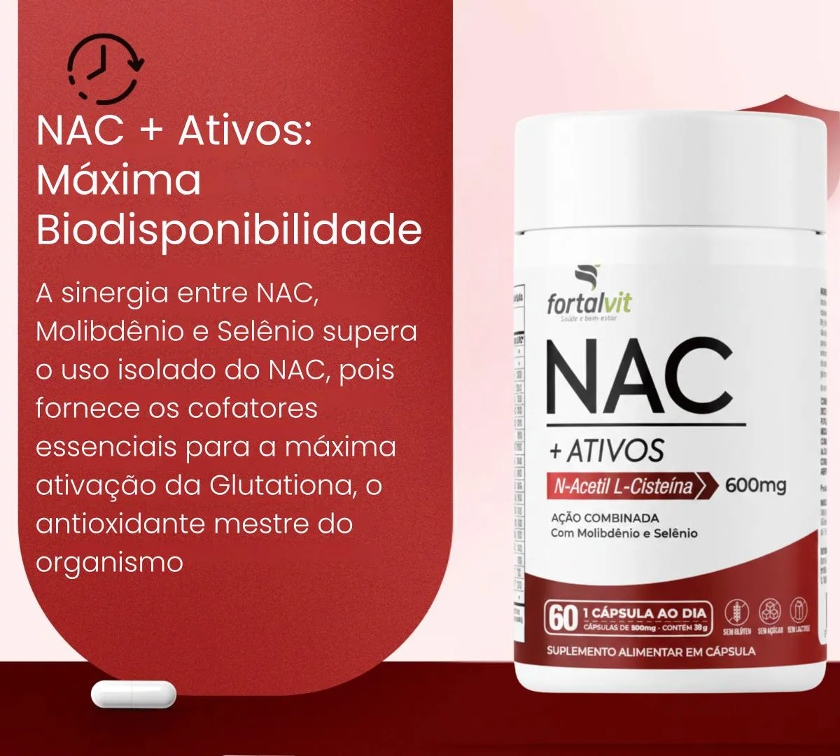 - Alta Concentração: Cada cápsula contém 600mg de NAC, um poderoso antioxidante.